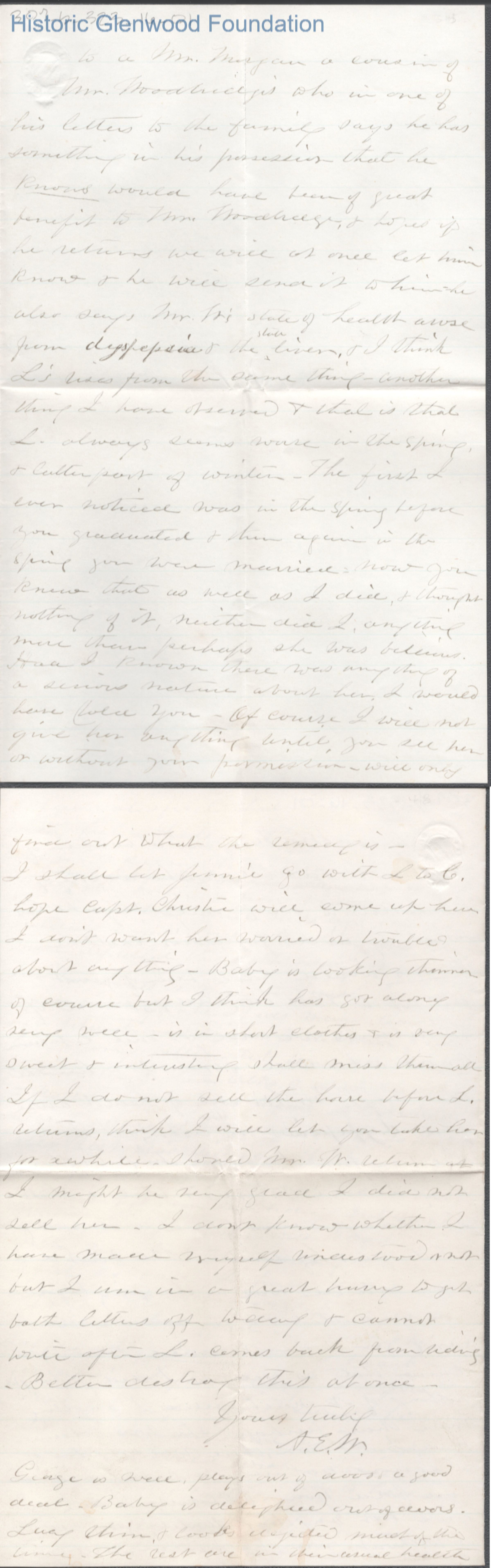 Eight-page letter to Lewis Summers from Abigail E. Woodbridge, Apr 15, 1871.