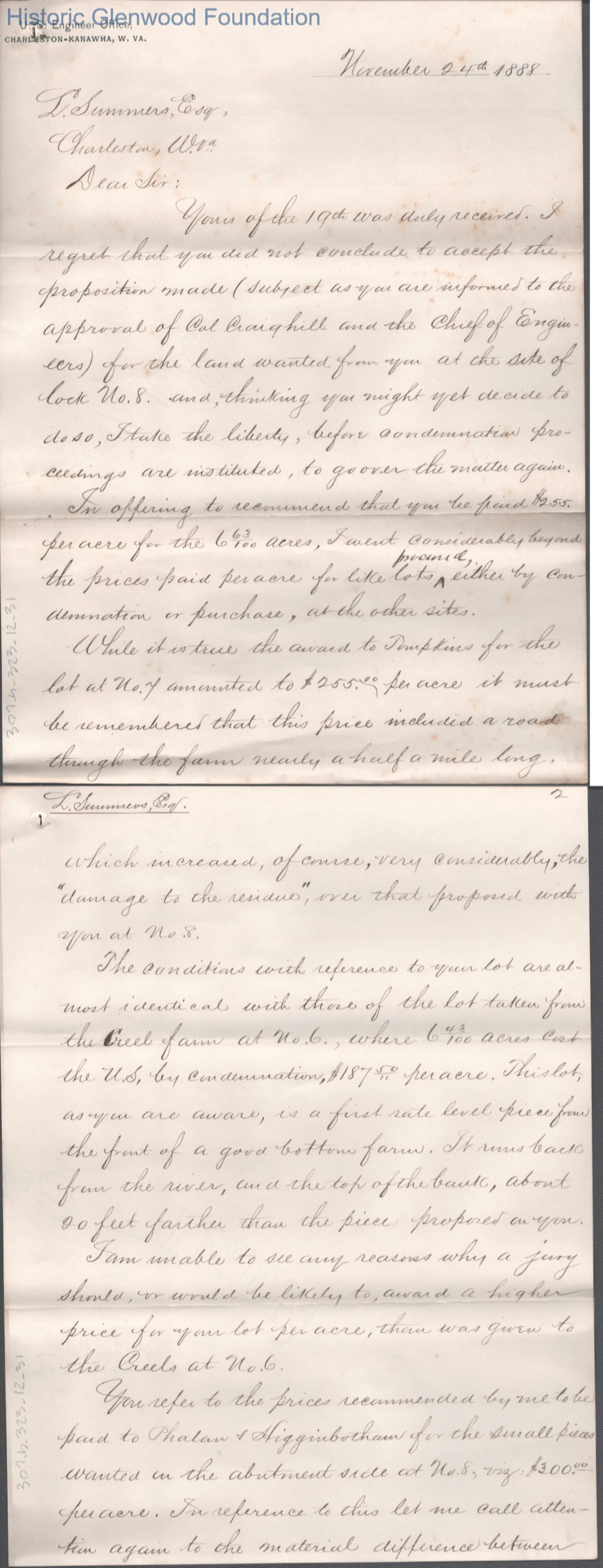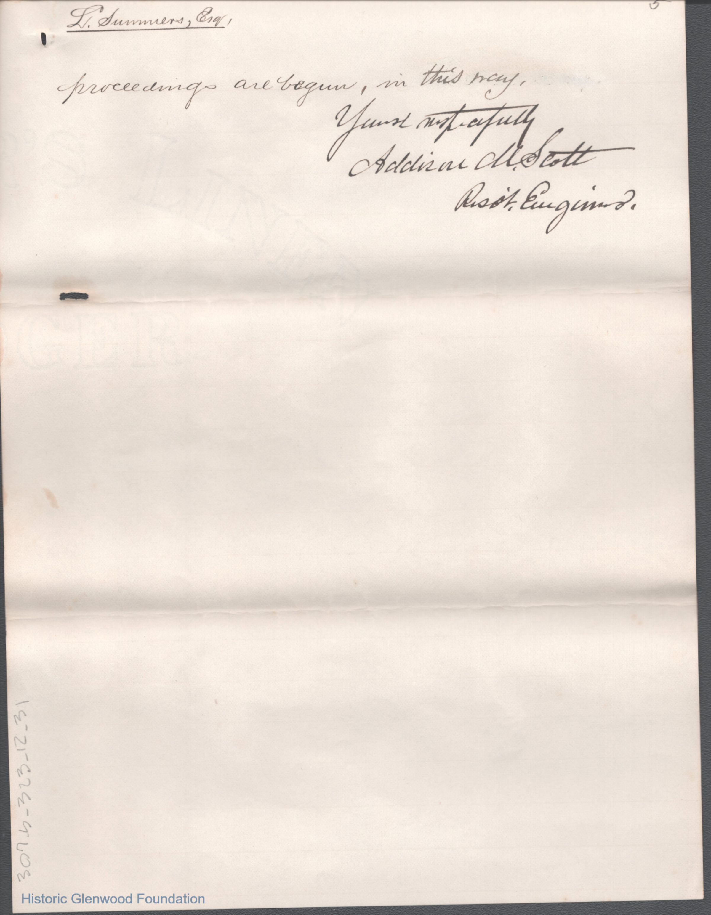 Five-page letter to Lewis Summers from Addison M. Scott, Nov 24, 1888.