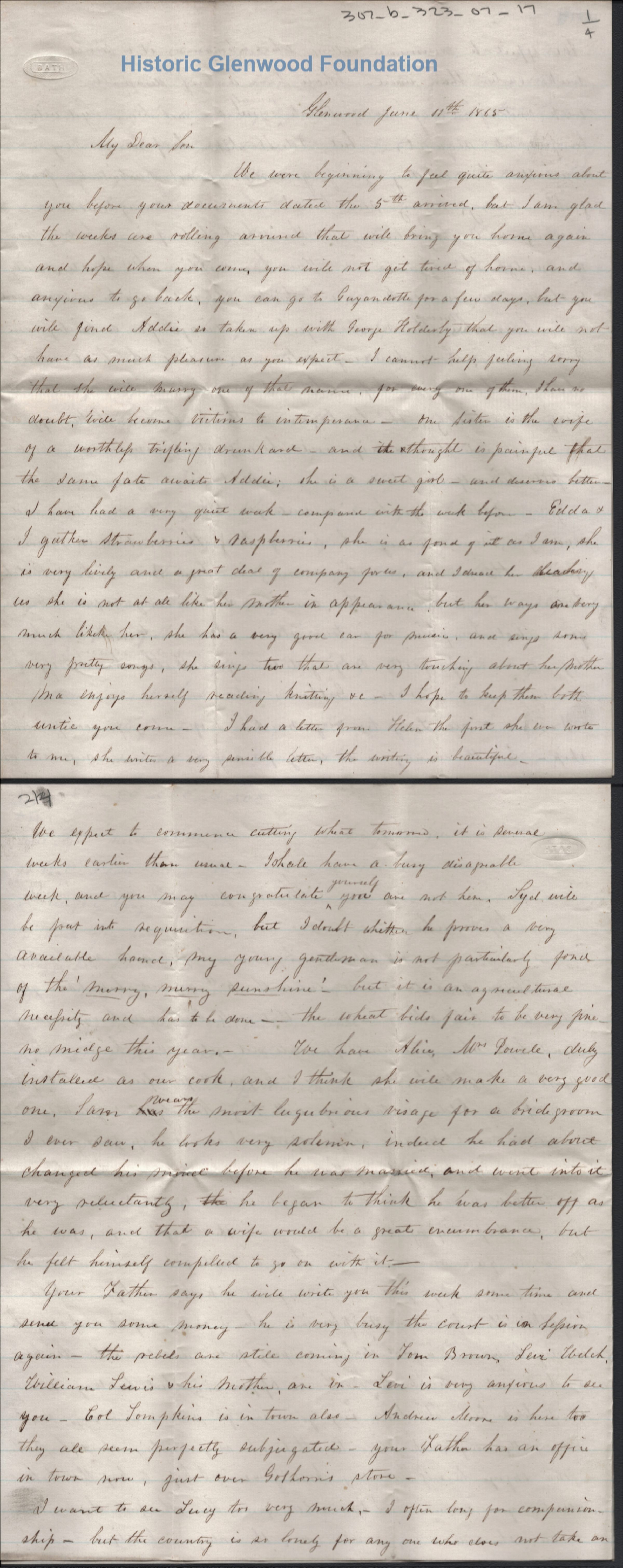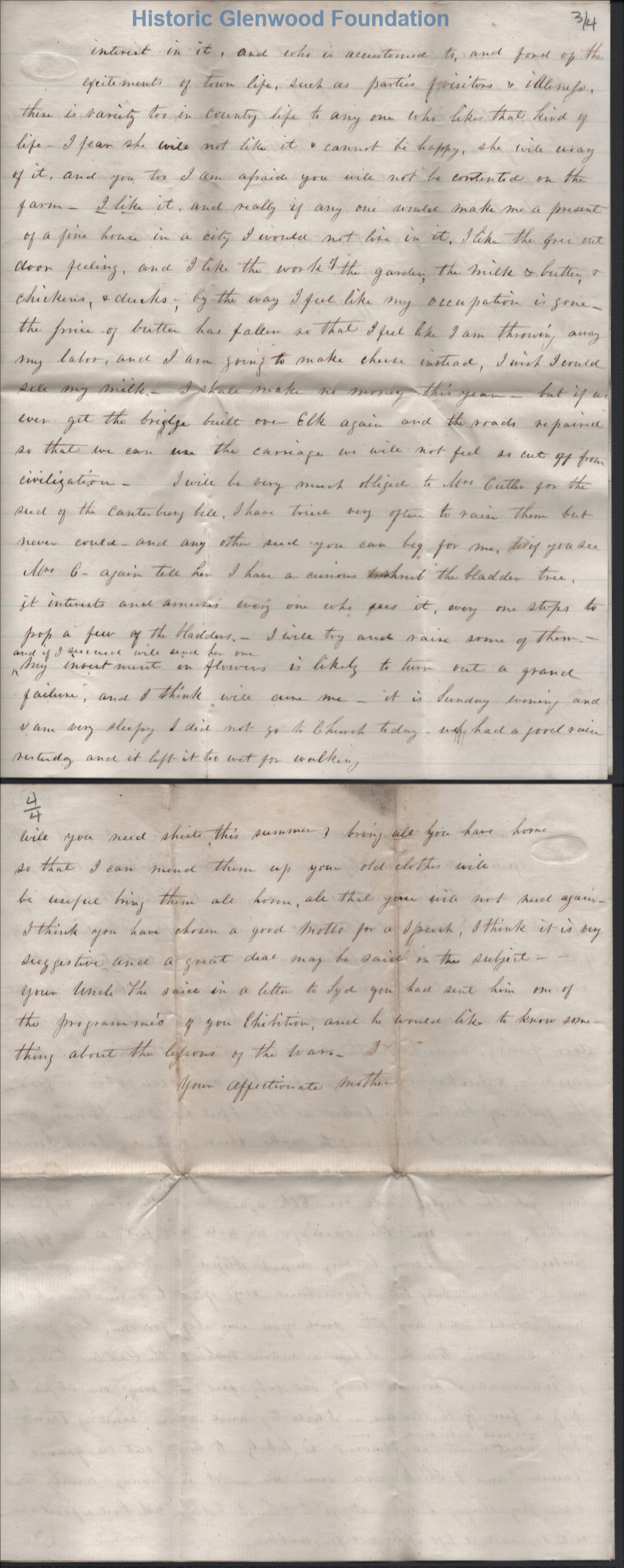 Letter to Lewis Summers from mother Amacetta Laidley SummersCreator