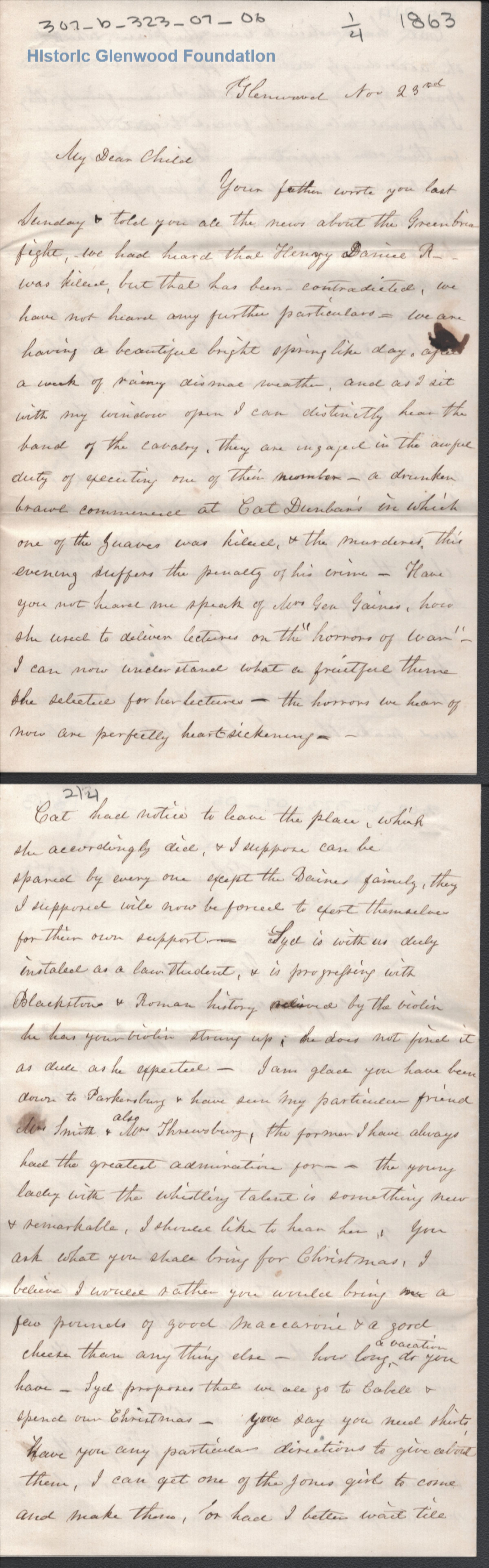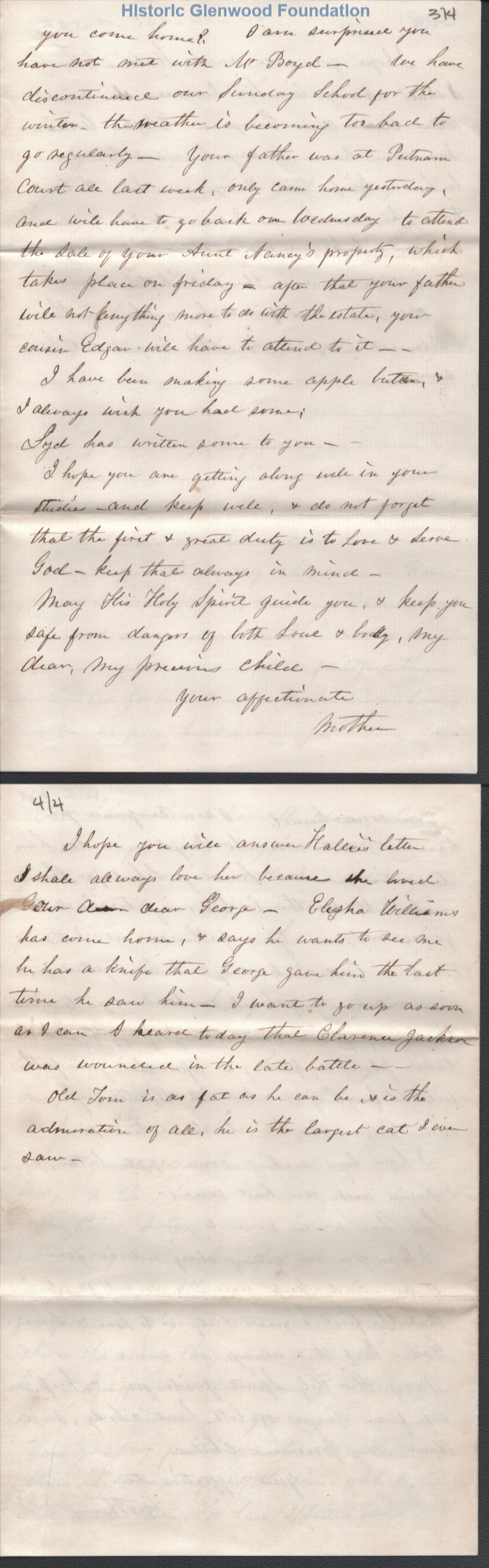 Letter to Lewis Summers from his mother Amacetta Laidley Summers at GlenwoodCreator