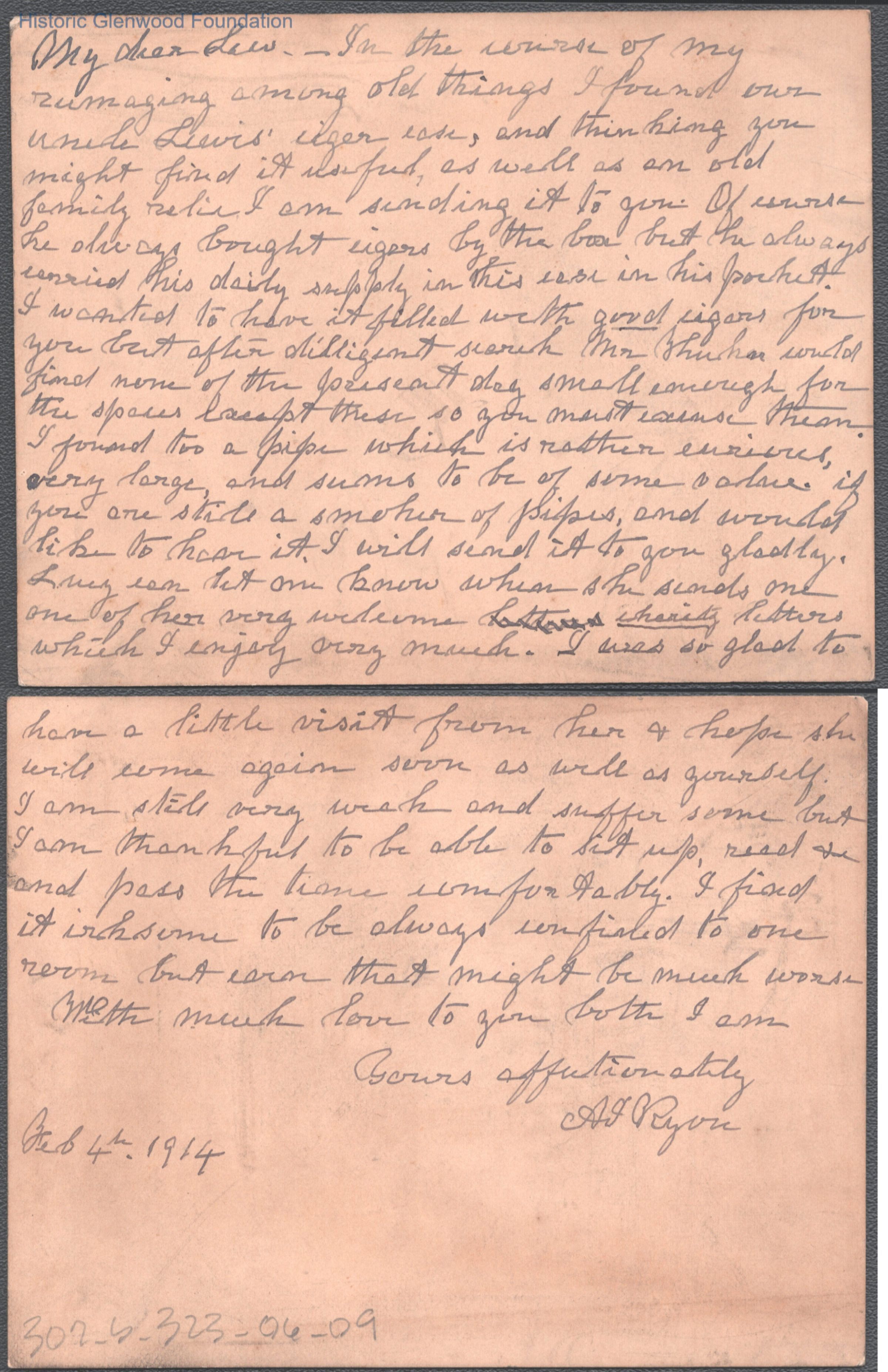 Two-page letter to Lewis Summers from Anna I. S. Ryon, Feb 4, 1914.