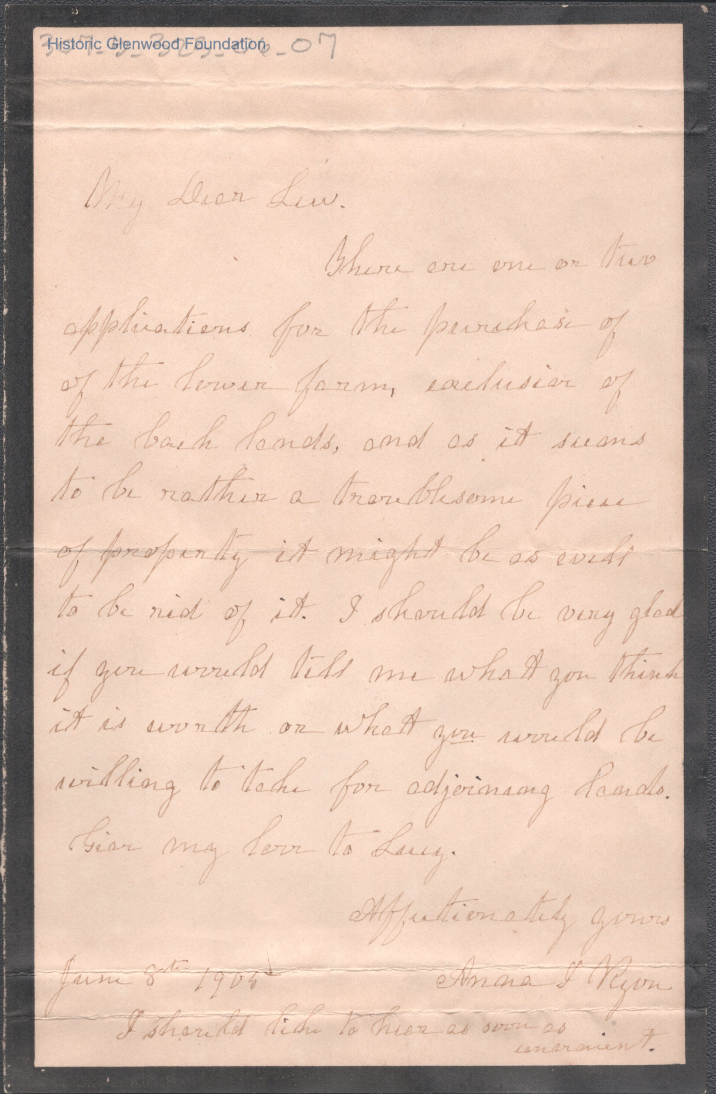 Lewis Summers from Anna I. S. Ryon, Jun 8, 1905
