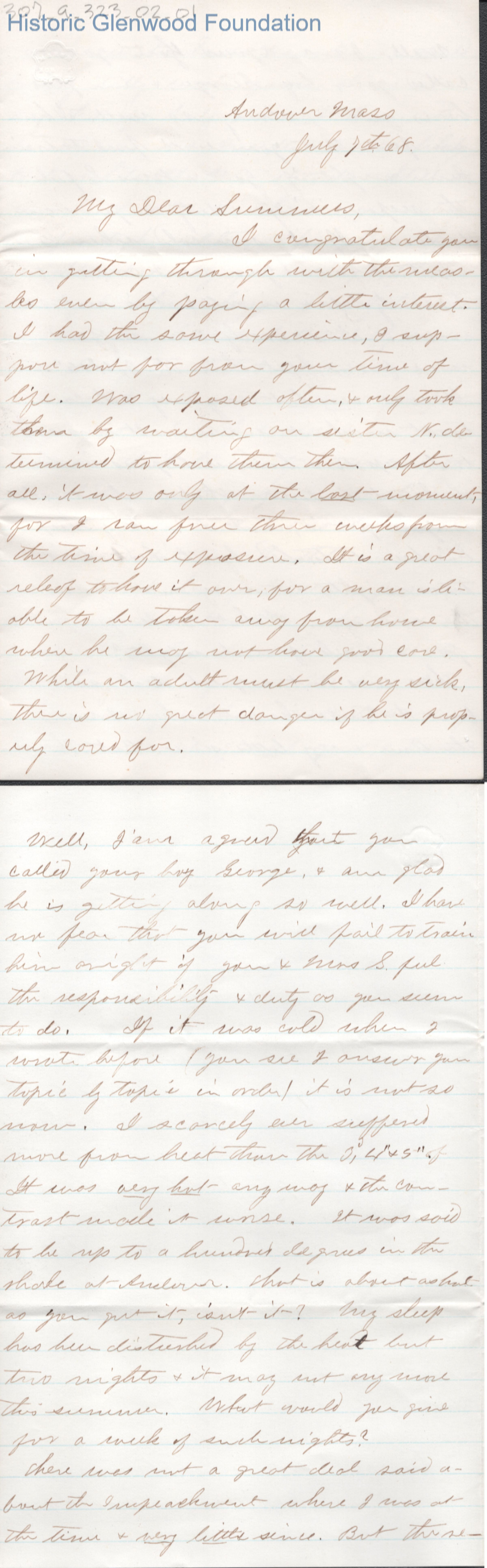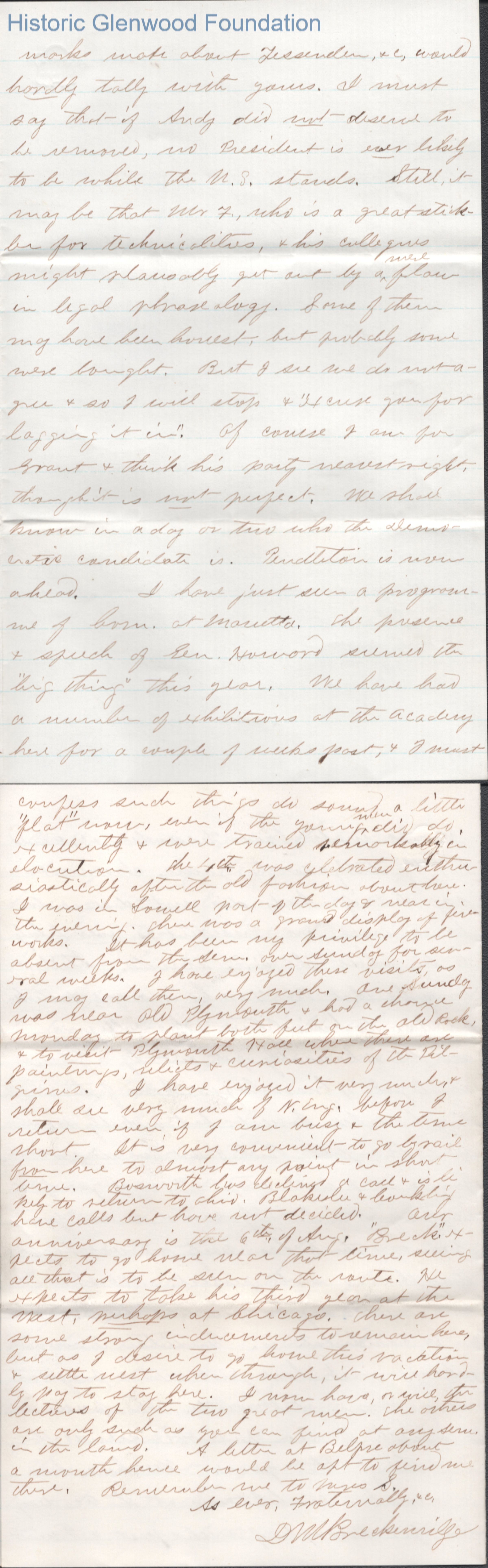 Four-page letter to Lewis Summers from D. W. Breckenridge, Jul 7, 1868.