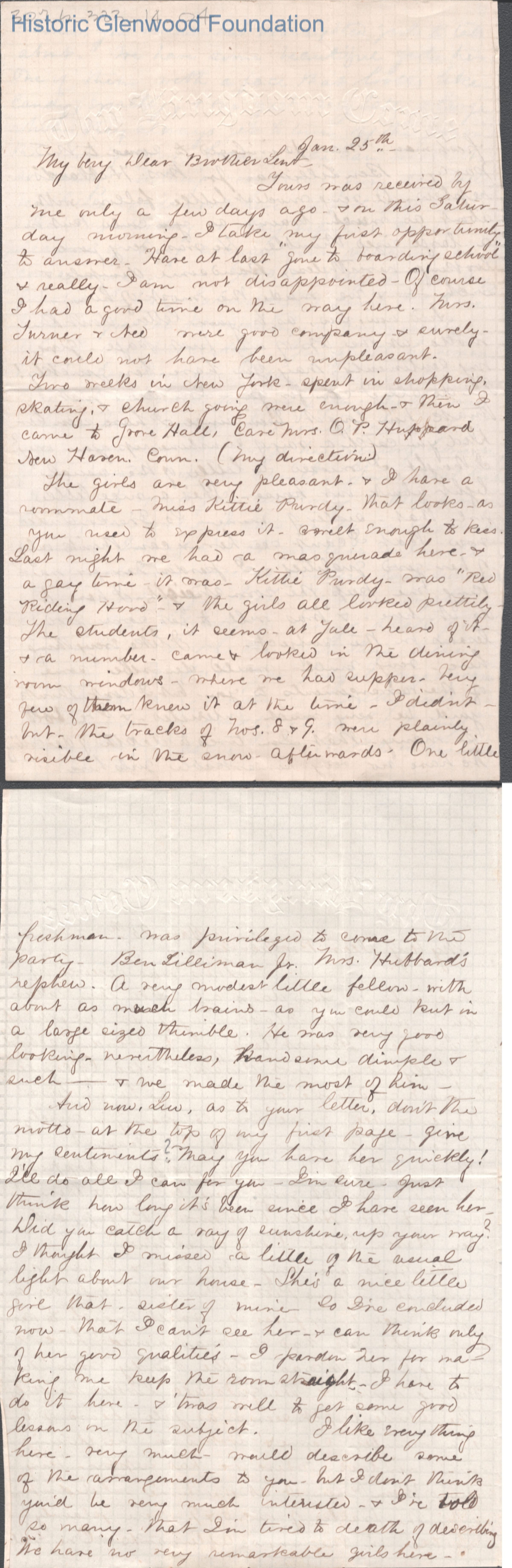 Four-page letter to Lewis Summers from Elizabeth W. Wickes, unknown year (although "Jan. 25th" is noted).