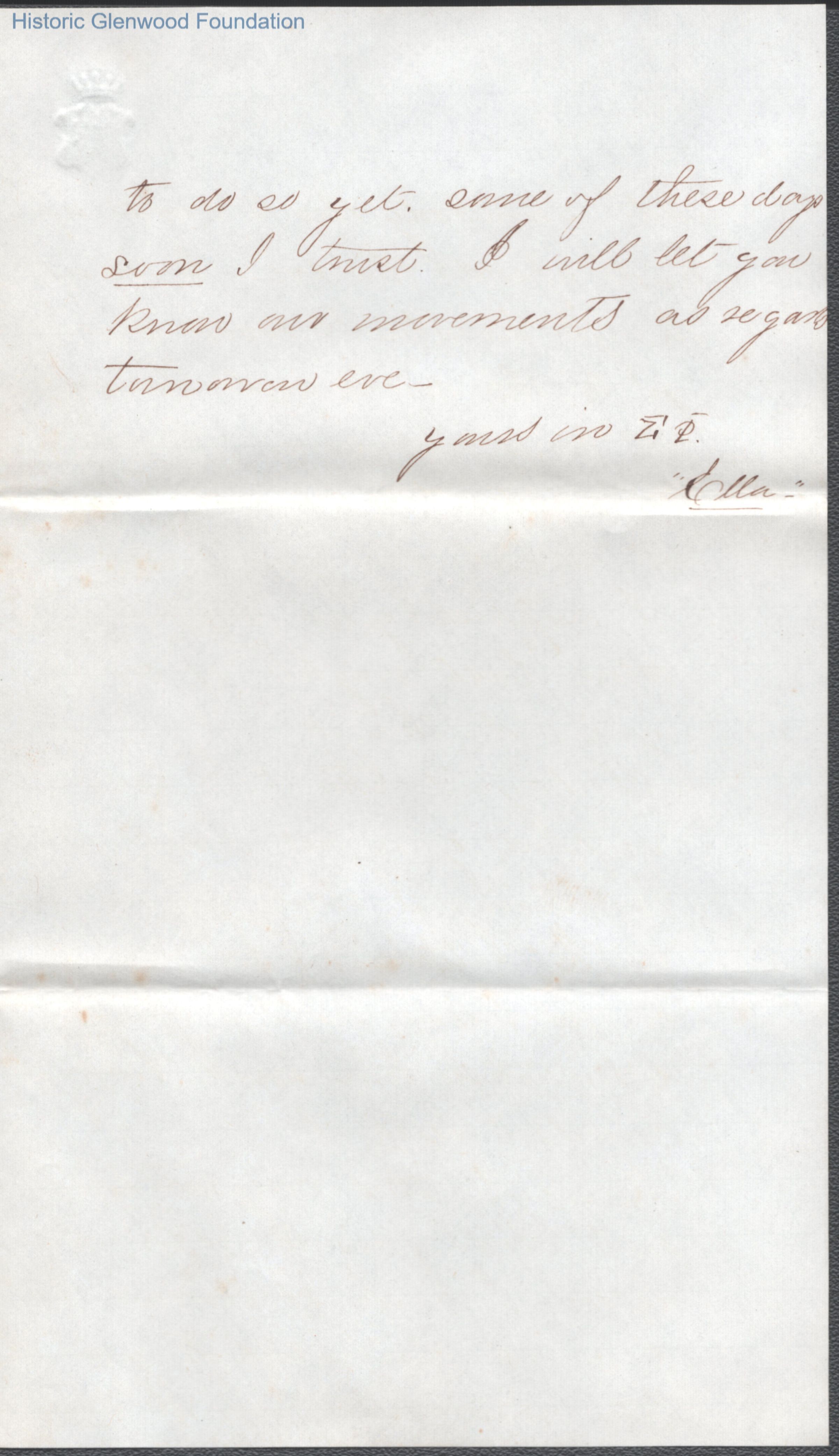 Three-page letter to Lewis Summers from Marietta classmate "Ella", c. 1864.