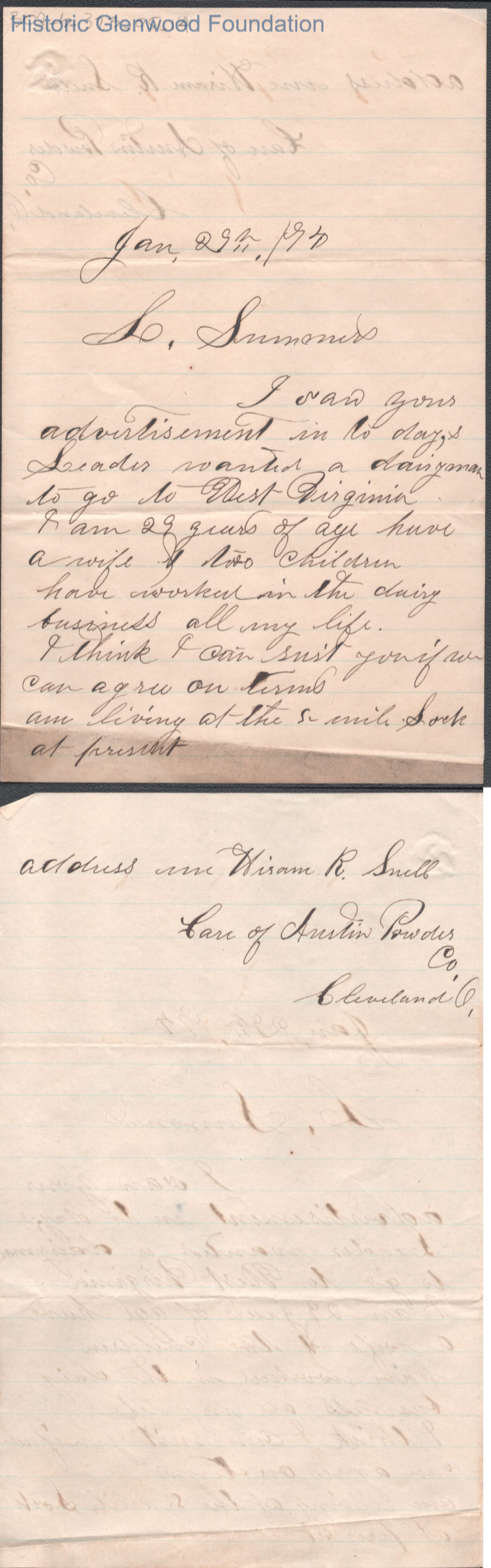 Lewis Summers from Hiram R. Snell, Jan 29, 1874