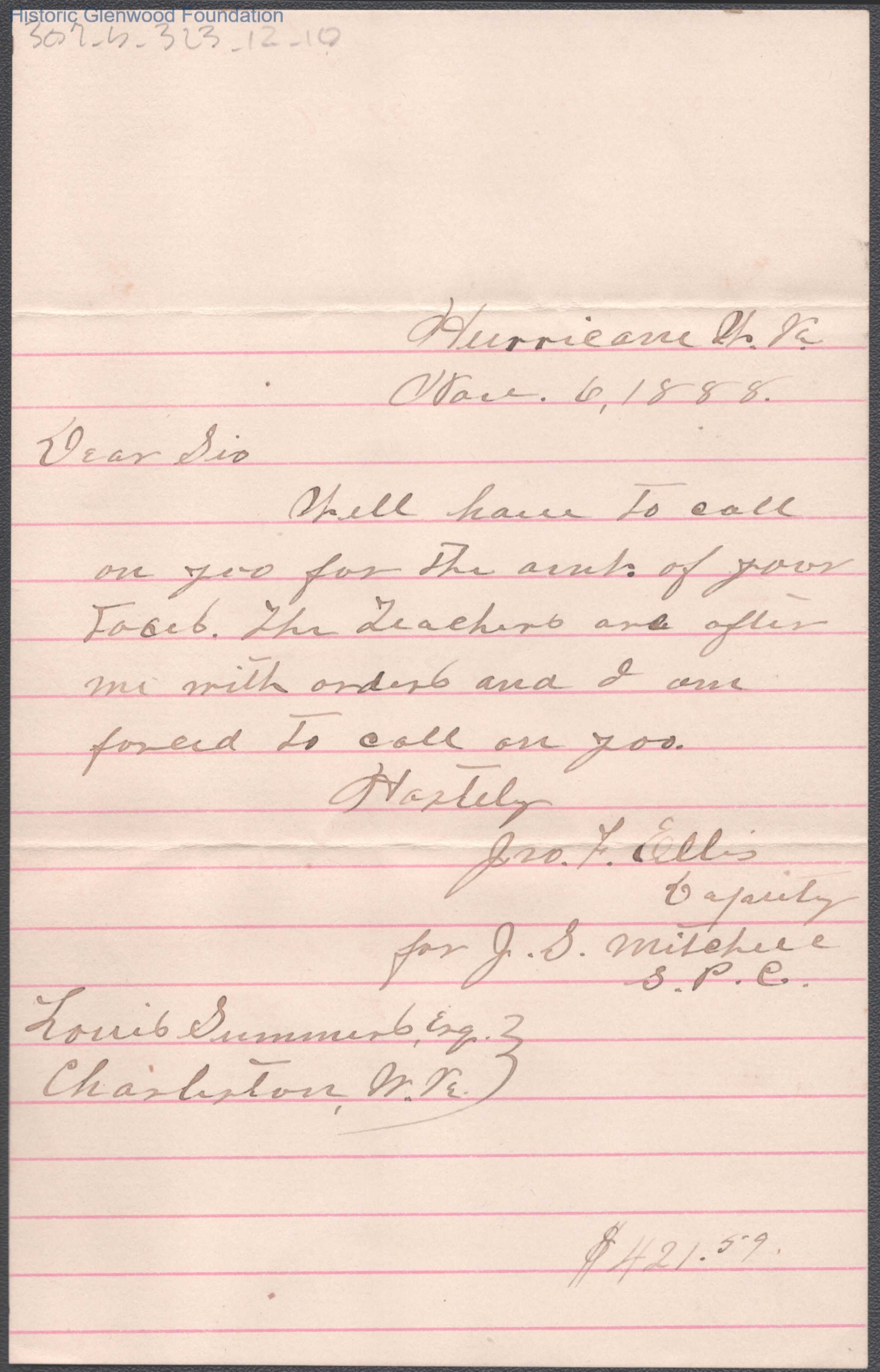 Lewis Summers from John F. Ellis, Nov 6, 1888