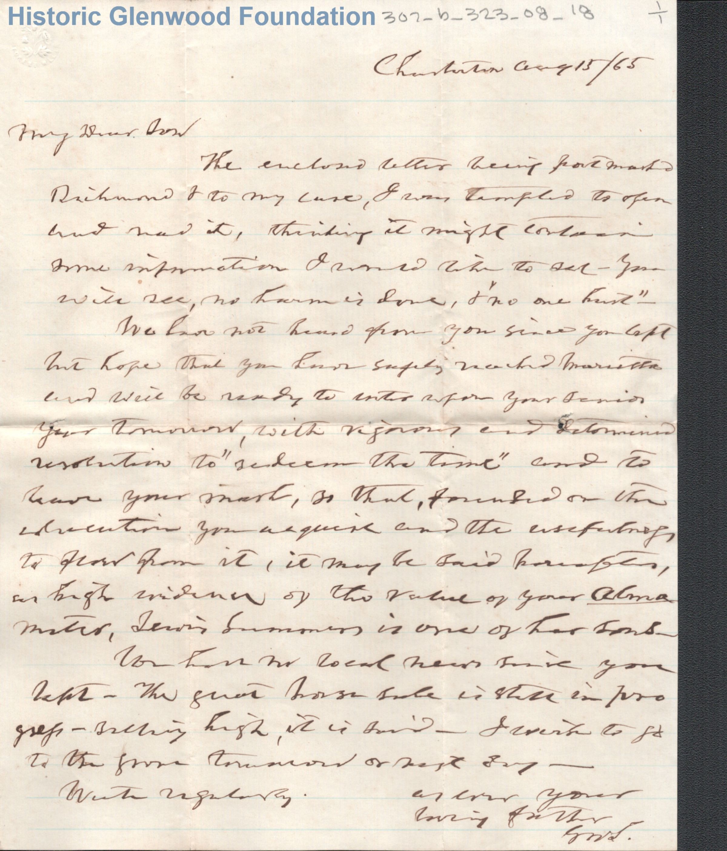 Lewis Summers from Judge George Summers, Aug 15, 1865