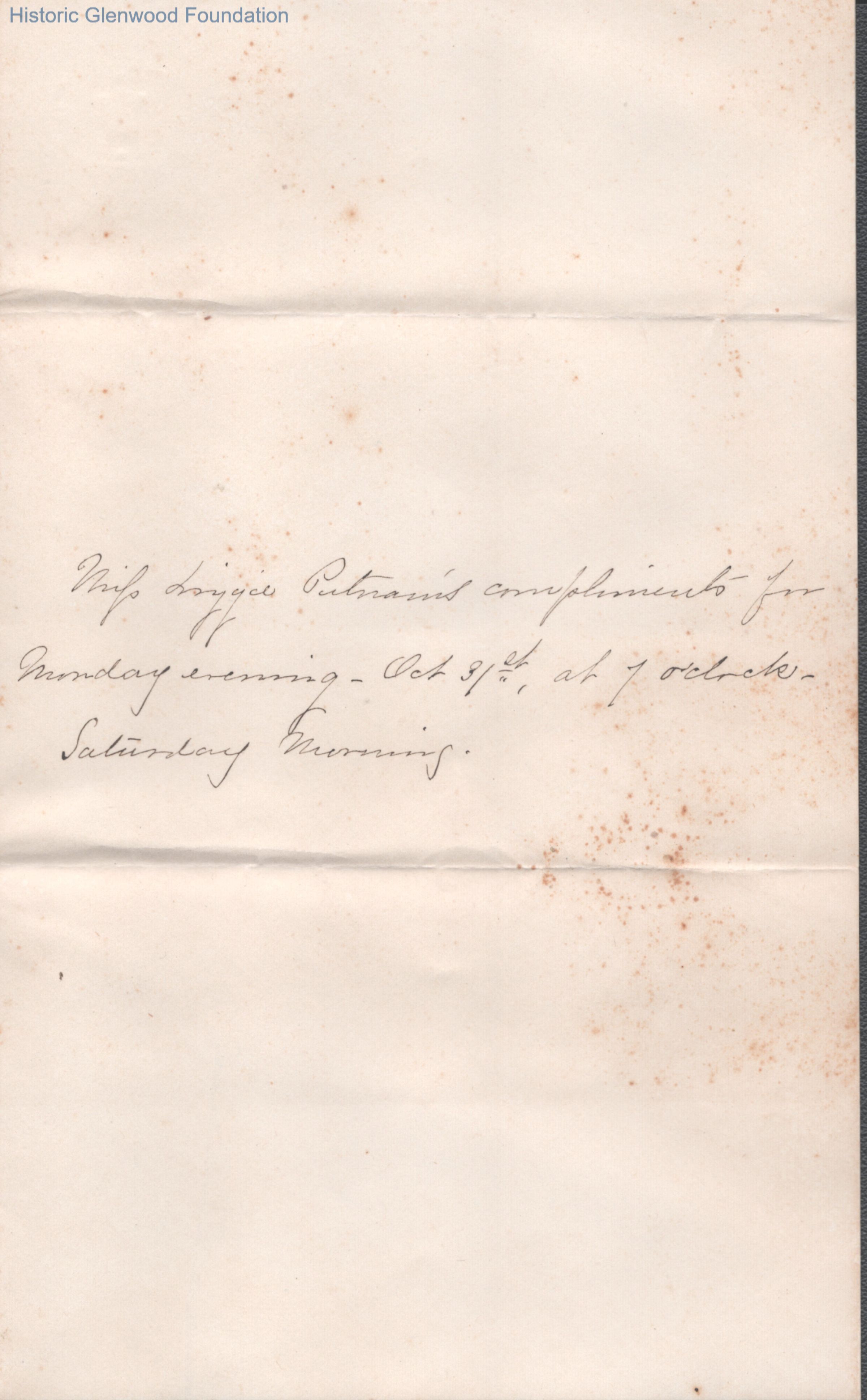 Brief note to Lewis Summers from Lizzie Putnam, unknown year (although "Monday evening, Oct 31st" is noted).