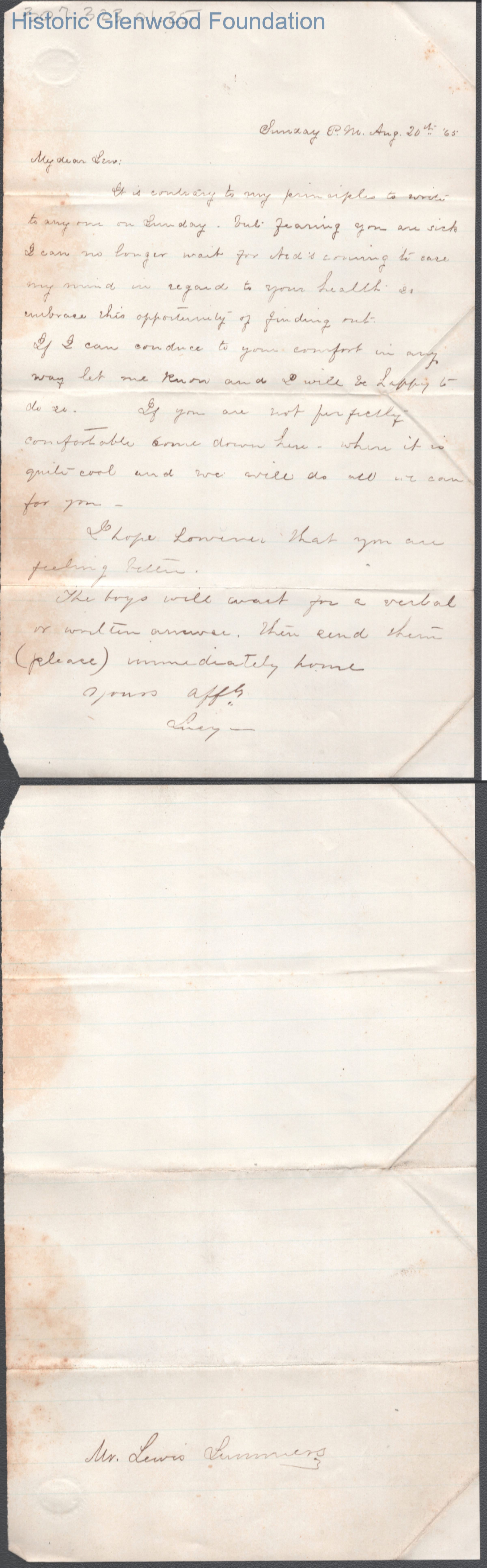 Lewis Summers from Lucy W. Summers, Aug 20, 1865