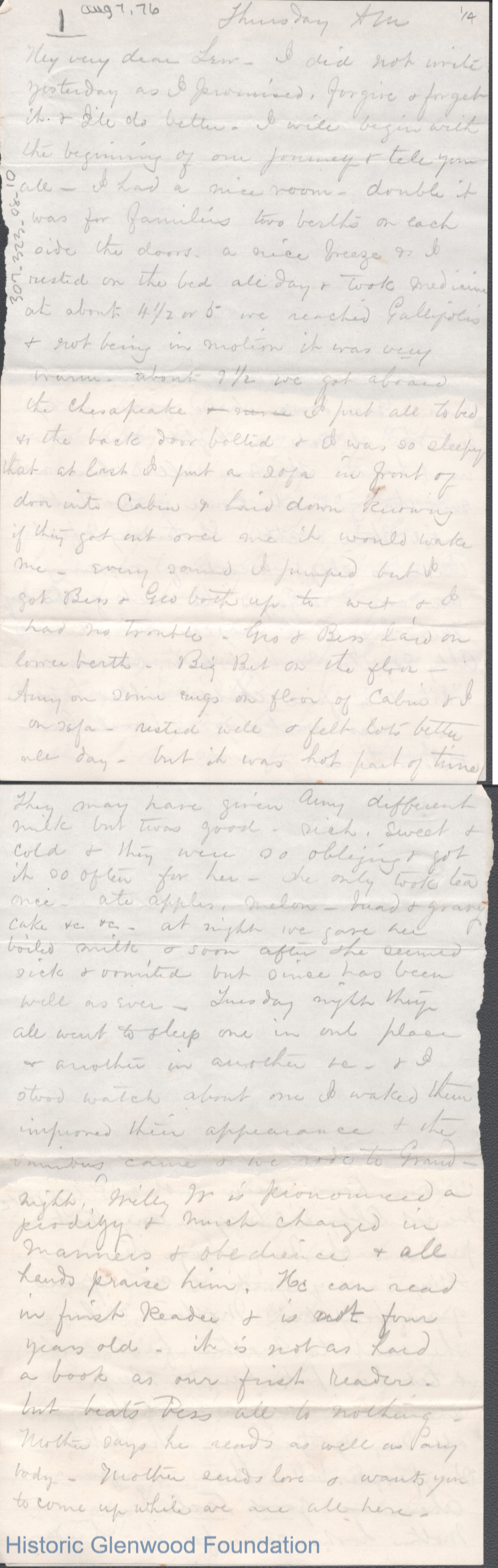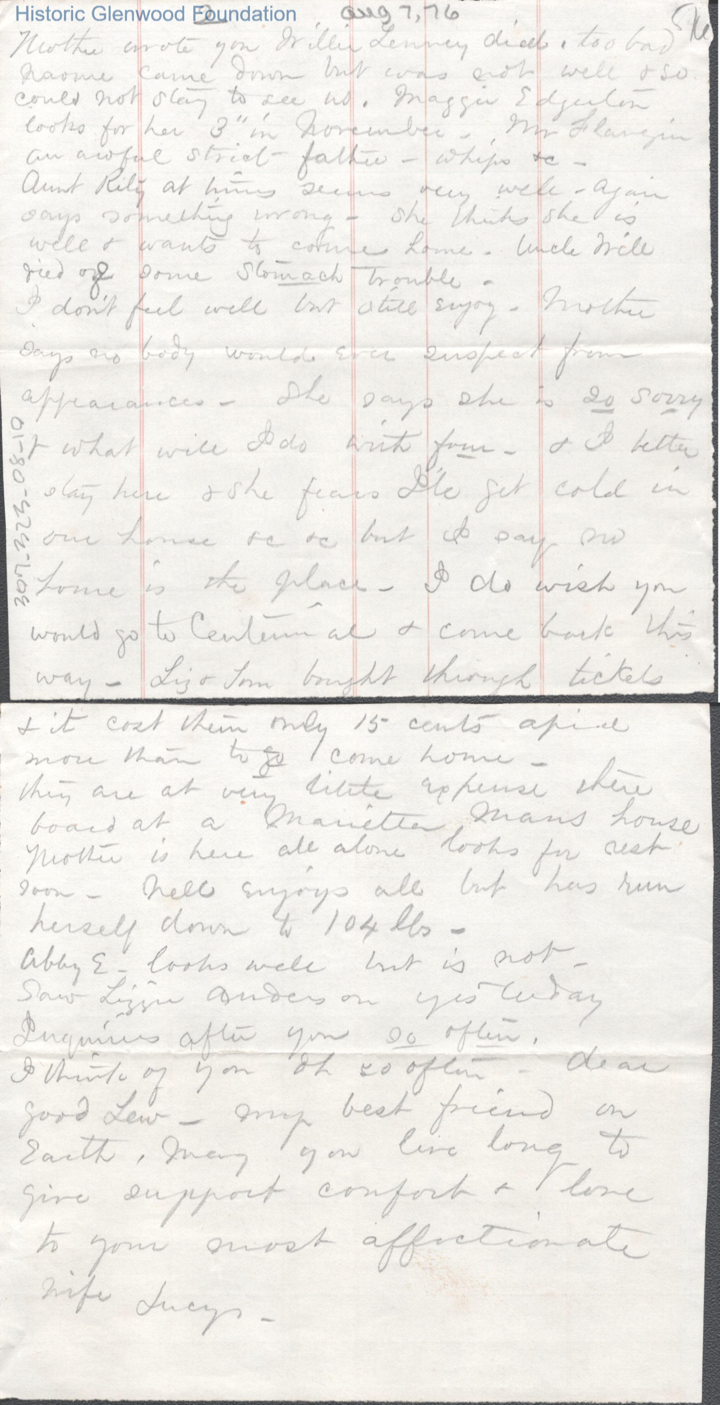 Lewis Summers from Lucy W. Summers, Aug 7, 1876