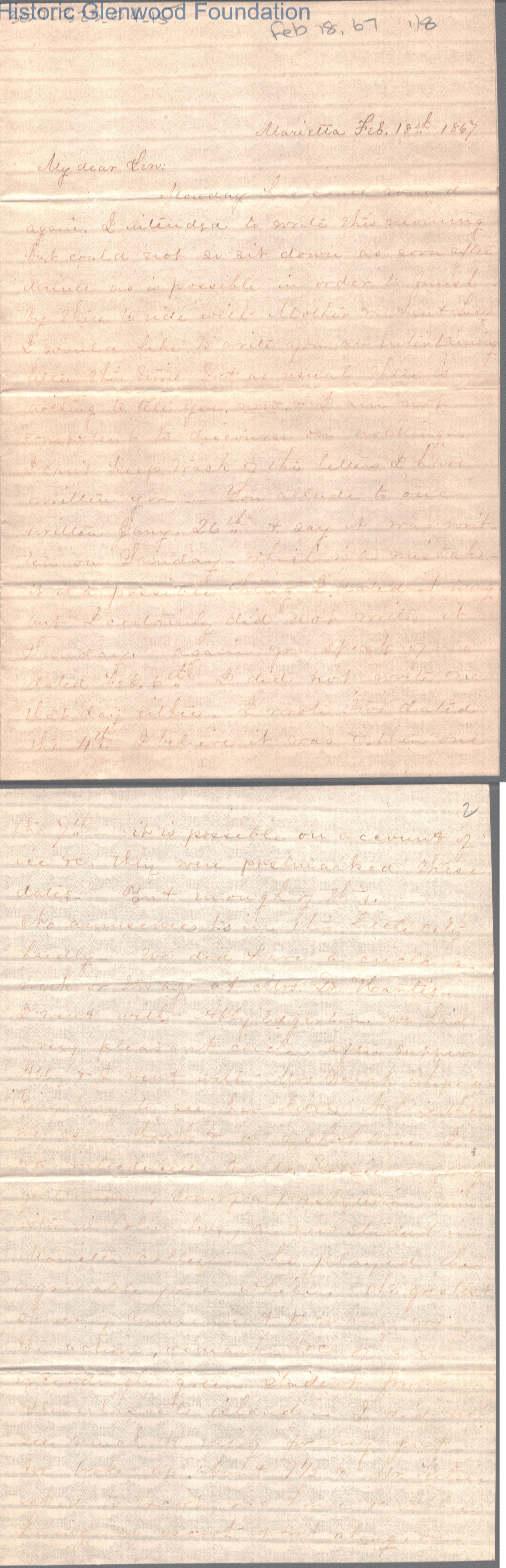 Lewis Summers from Lucy W. Summers, Feb 18, 1867