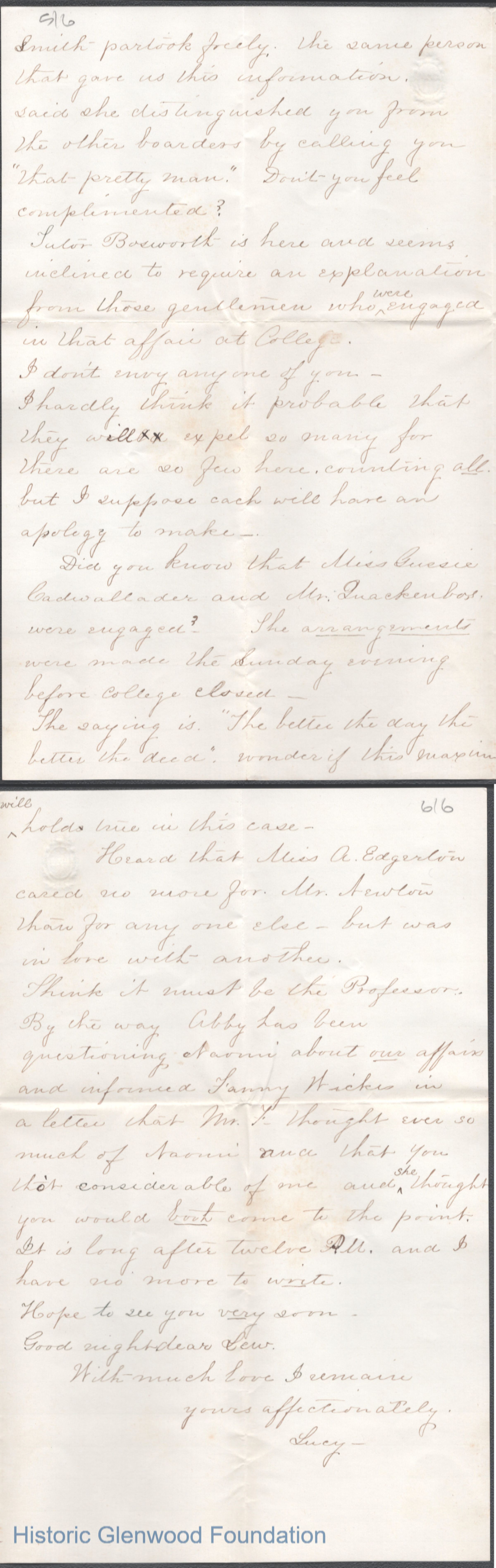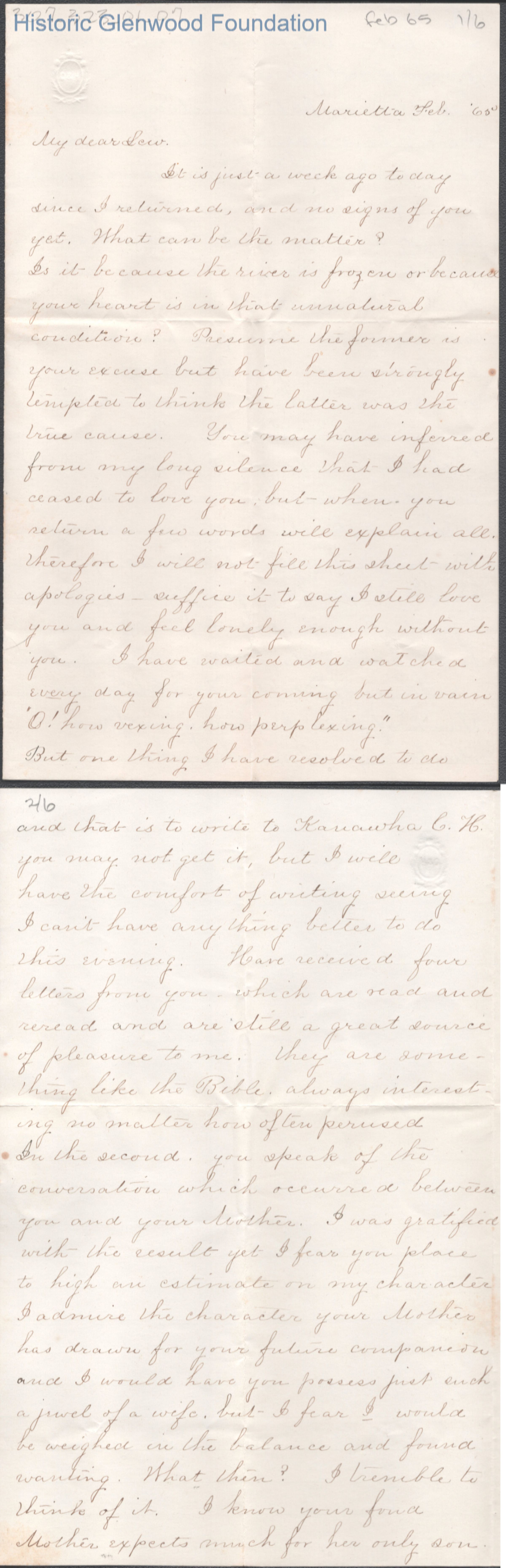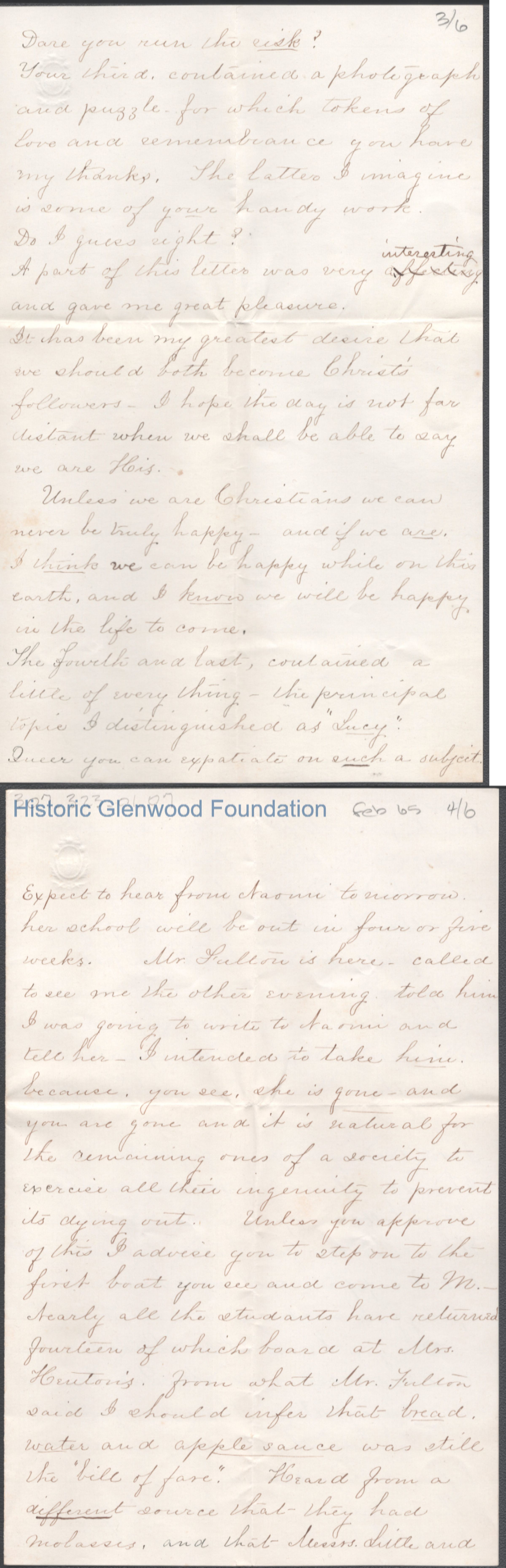 Six-page letter to Lewis Summers from Lucy W. Summers, Feb 1865.