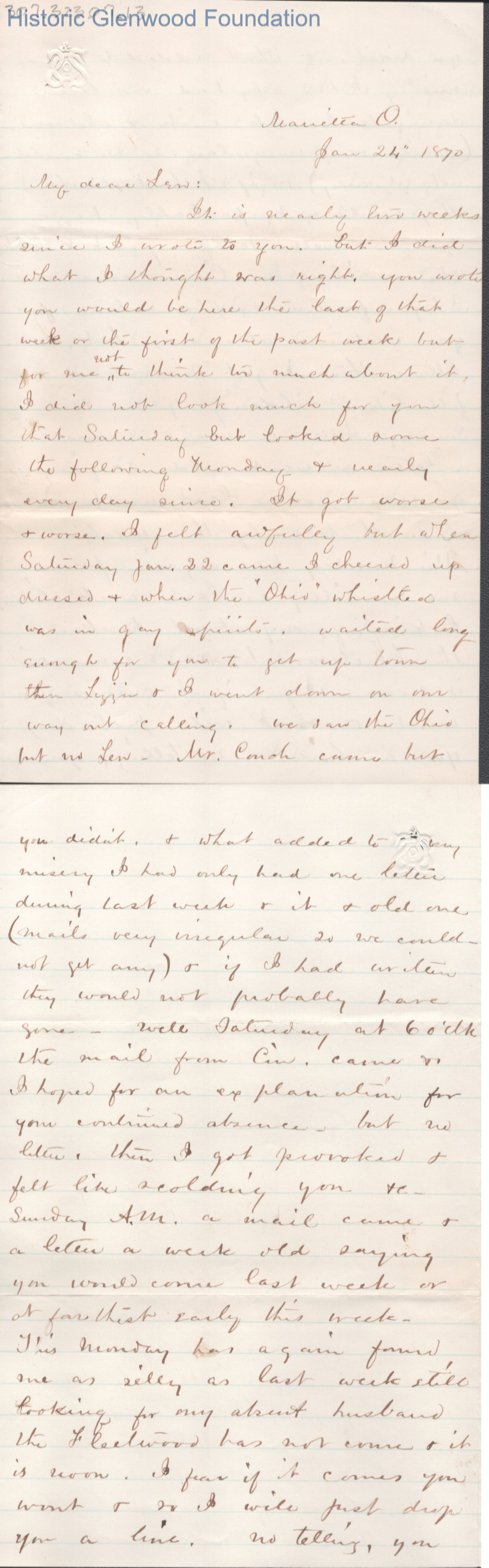 Lewis Summers from Lucy W. Summers, Jan 24, 1870