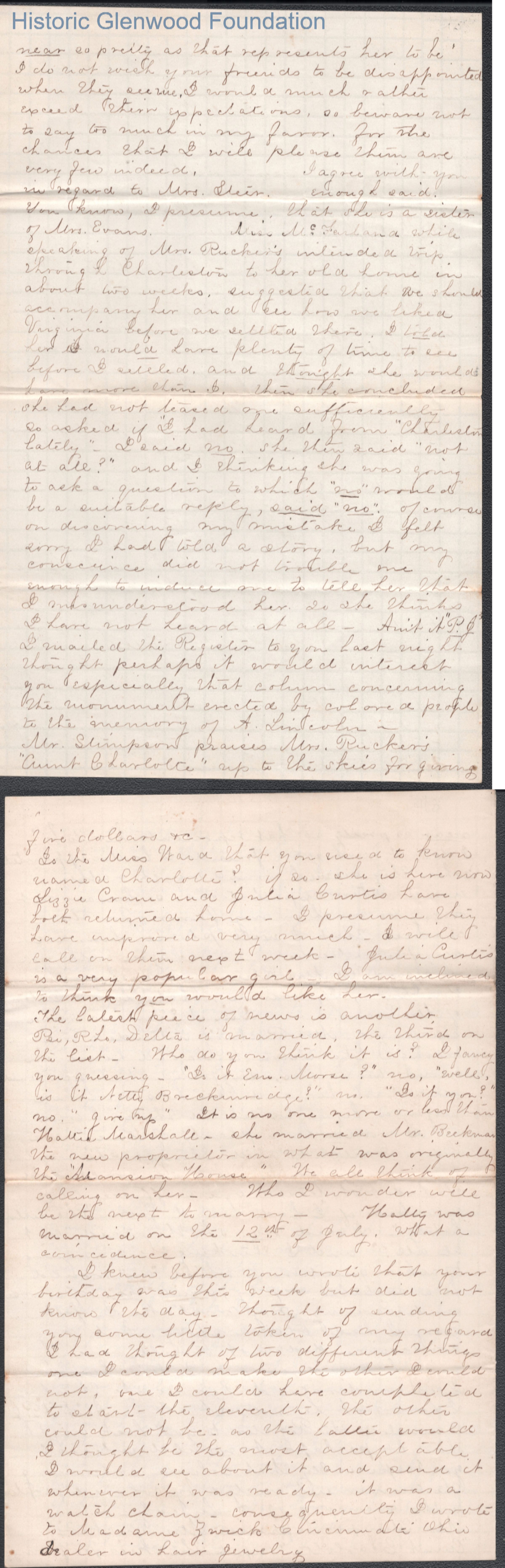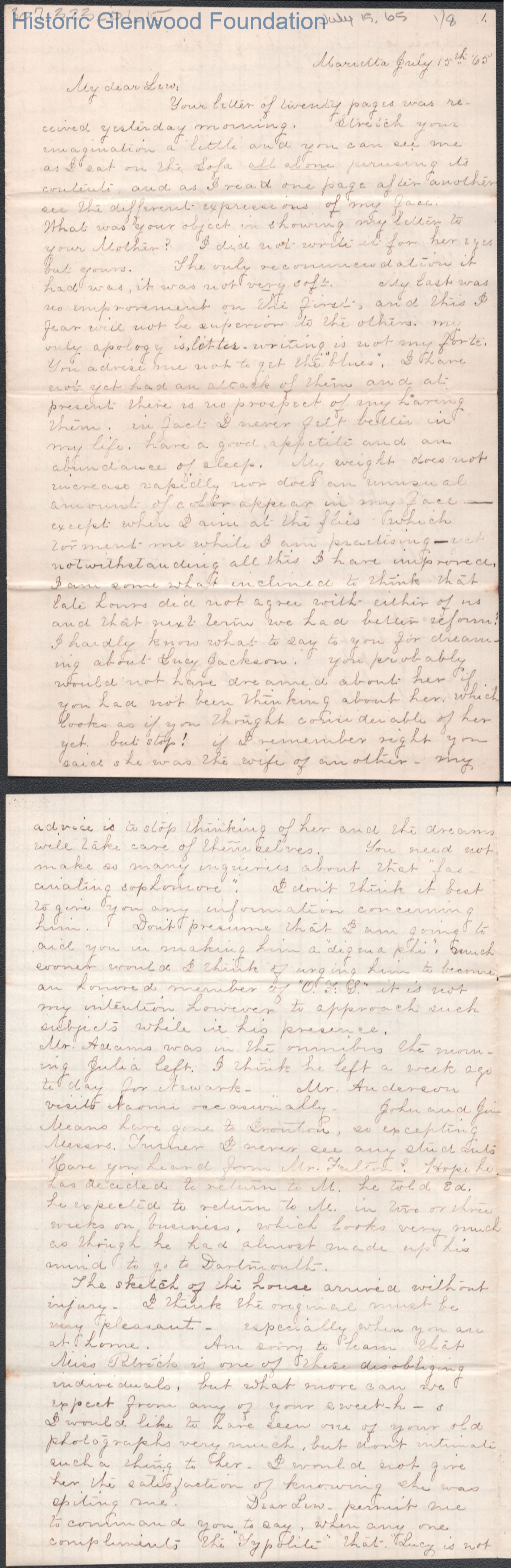 Eight-page letter to Lewis Summers from Lucy W. Summers, Jul 15, 1865.
