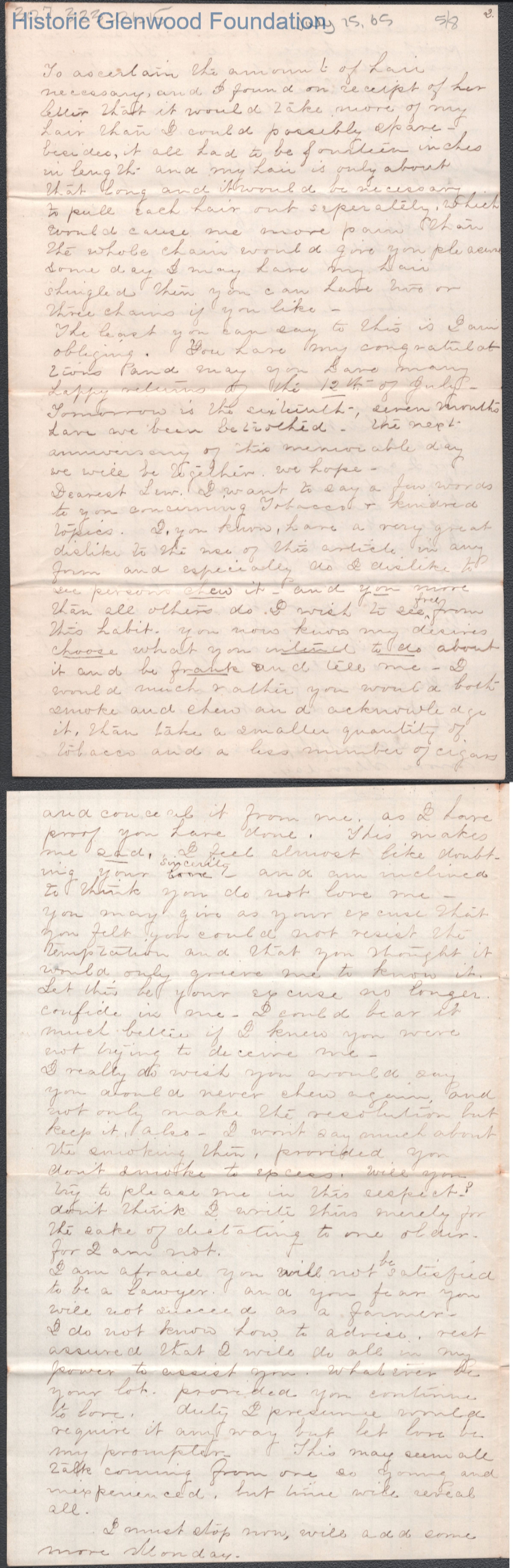Lewis Summers from Lucy W. Summers, Jul 15, 1865