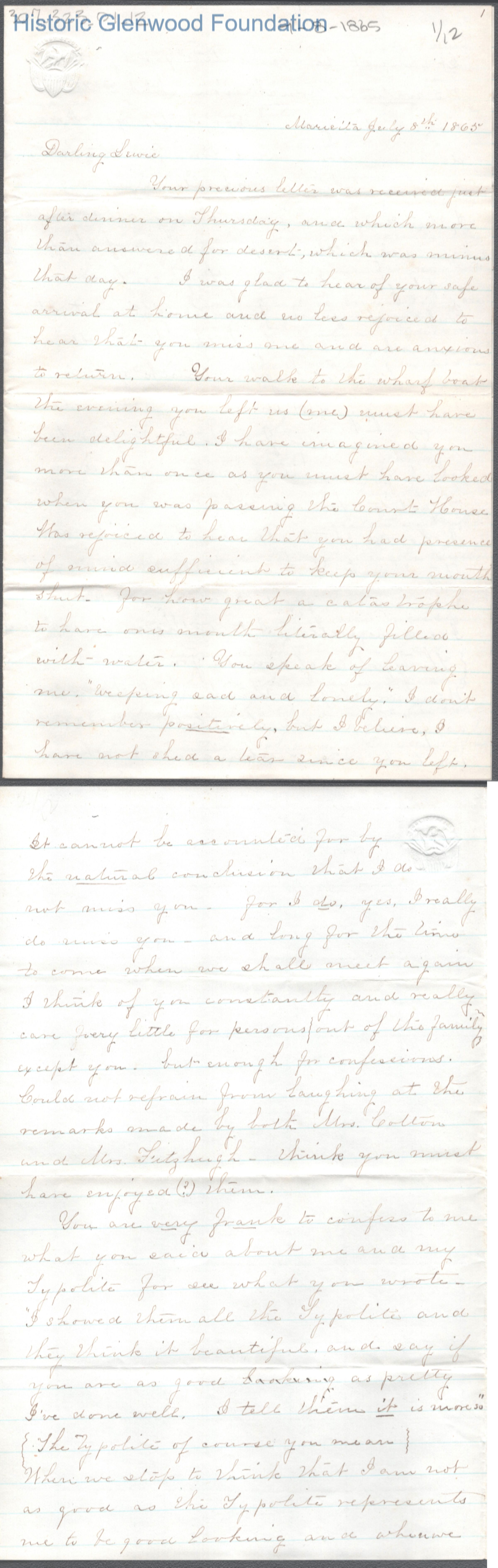 Lewis Summers from Lucy W. Summers, Jul 8, 1865