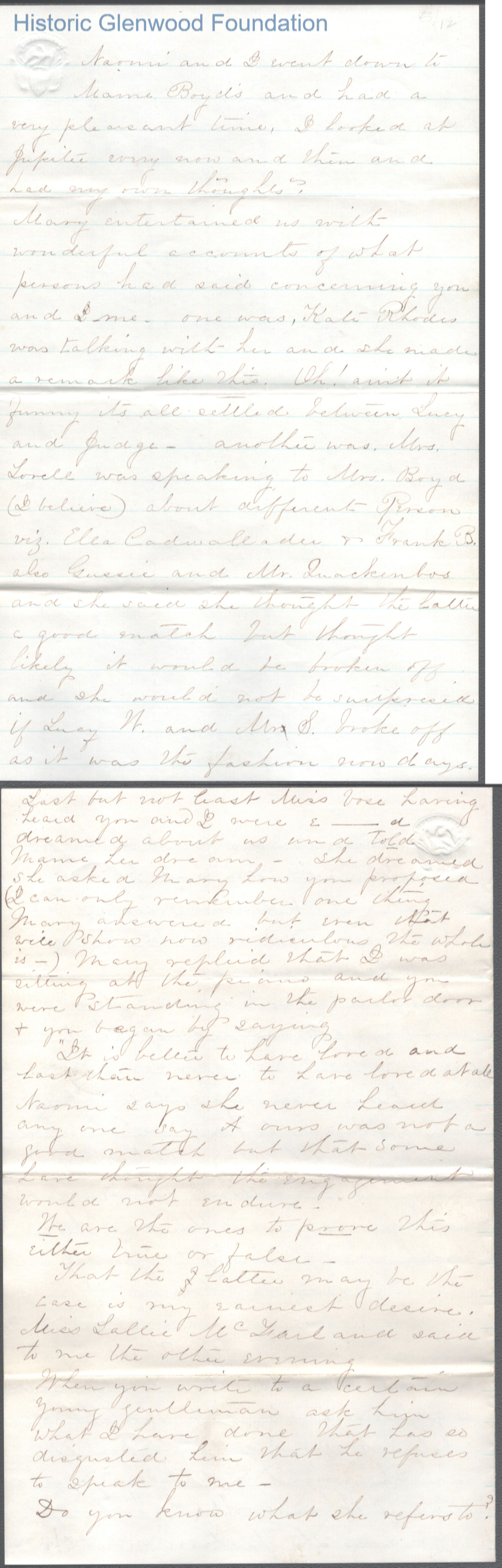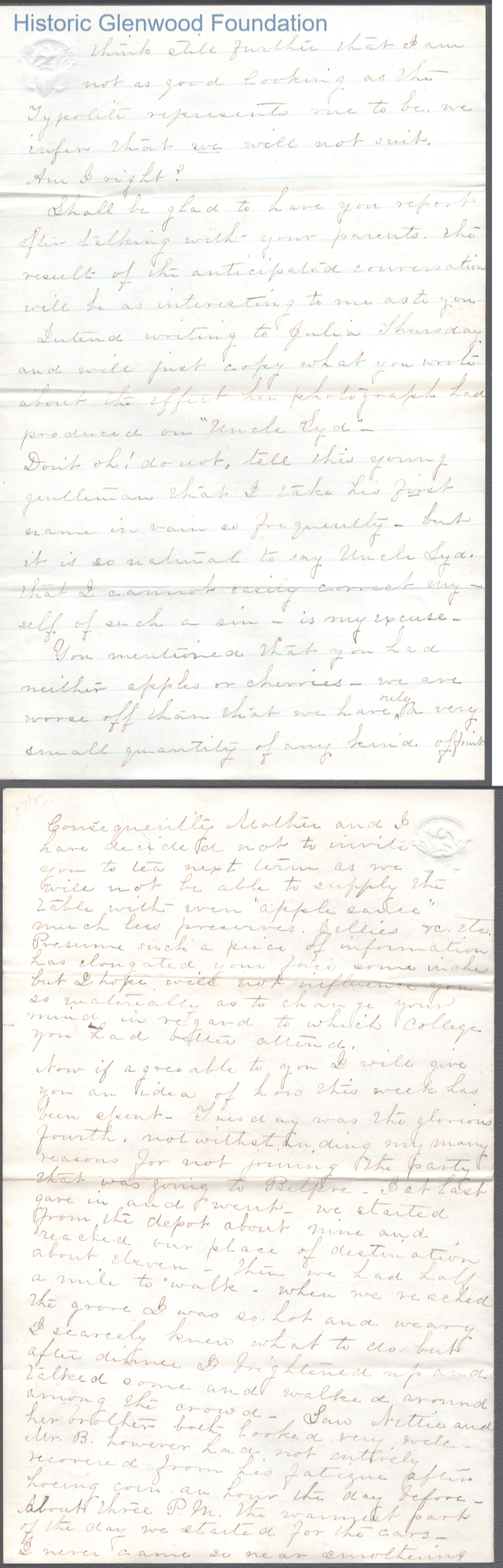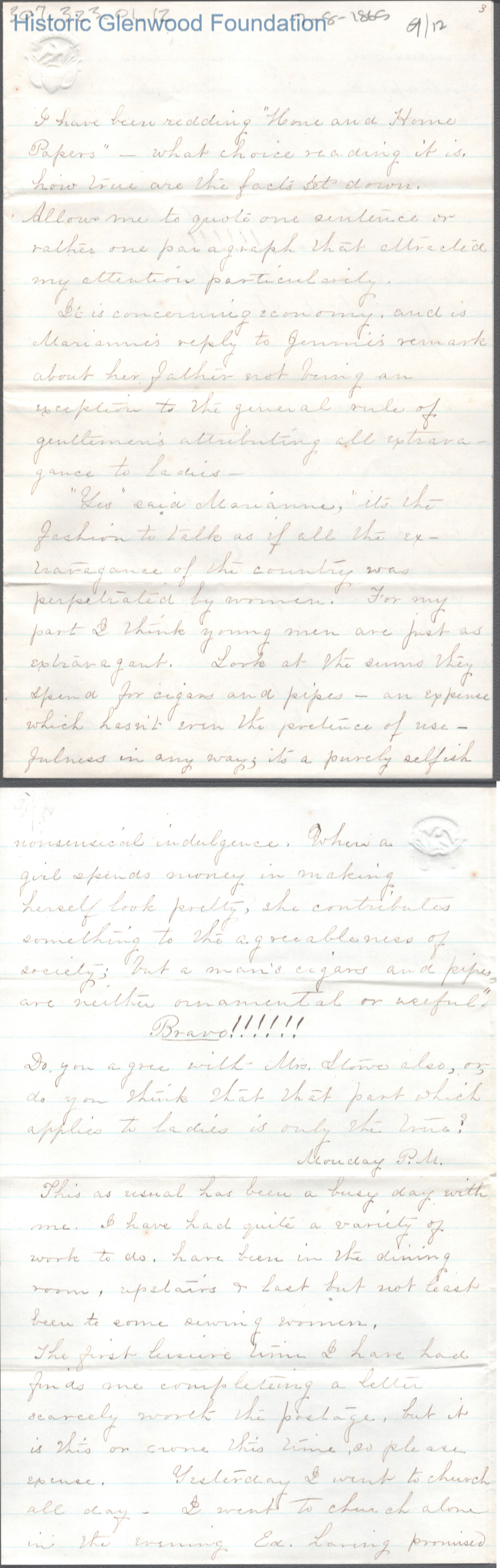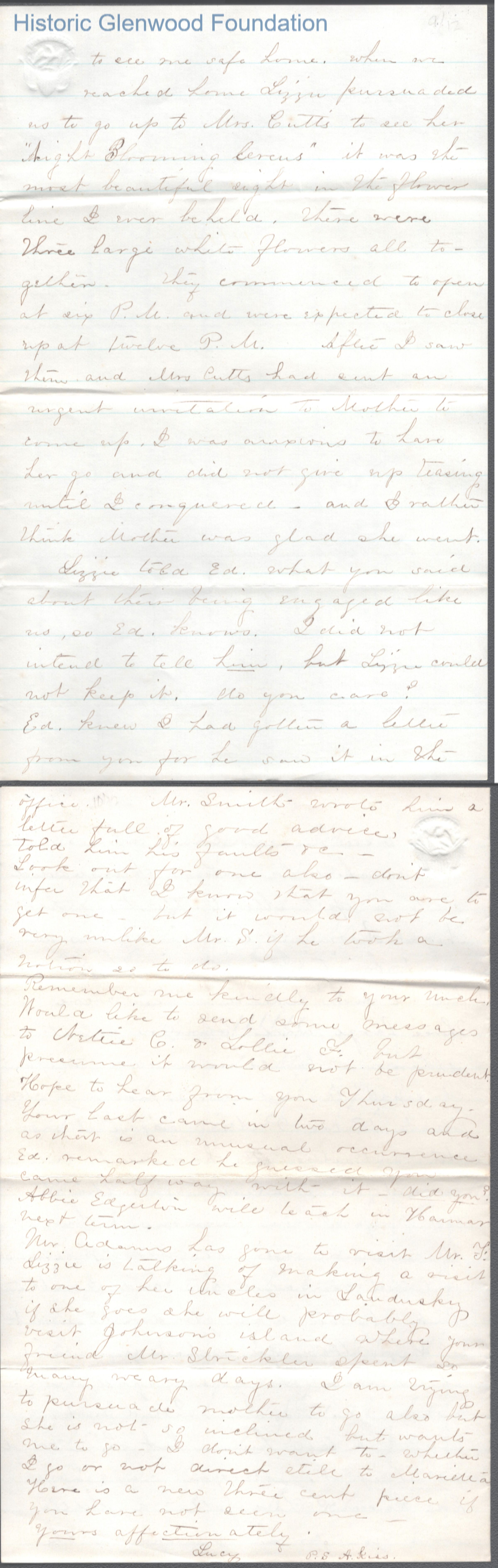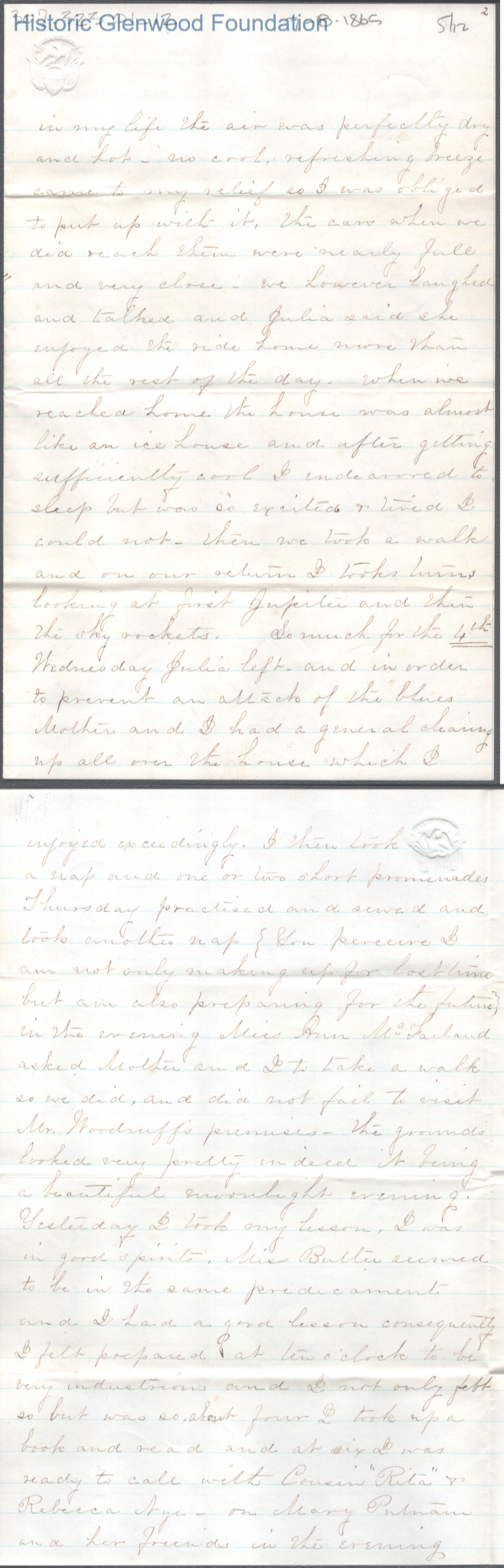 Twelve-page letter to Lewis Summers from Lucy W. Summers, Jul 8, 1865.