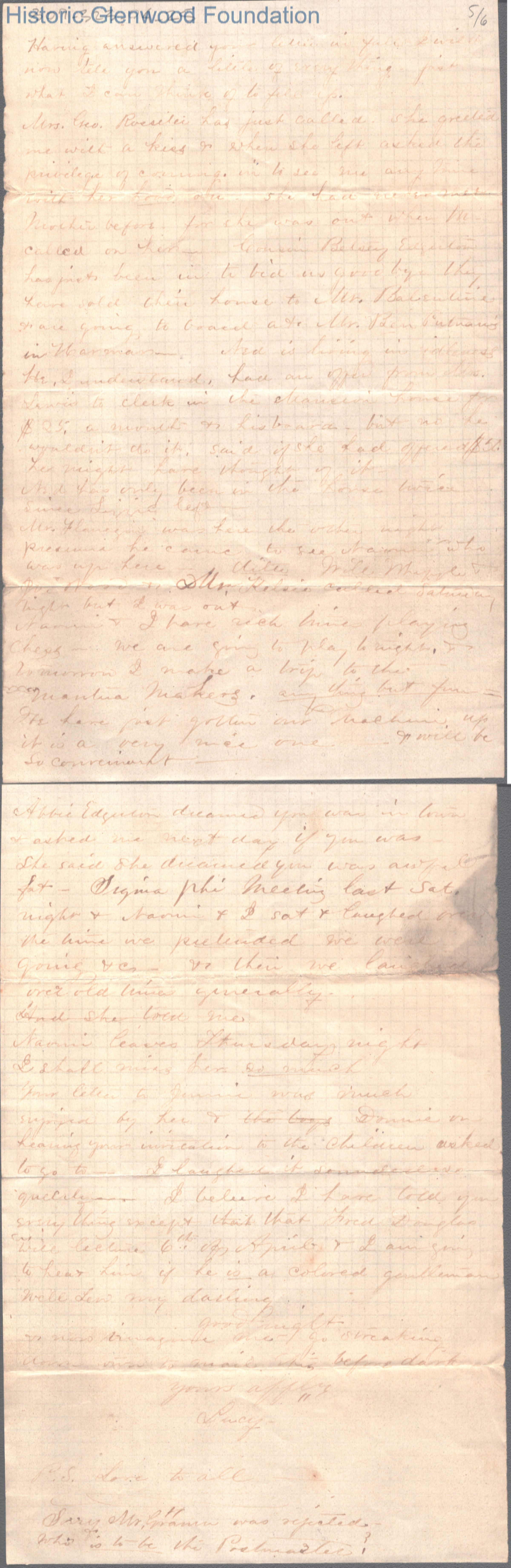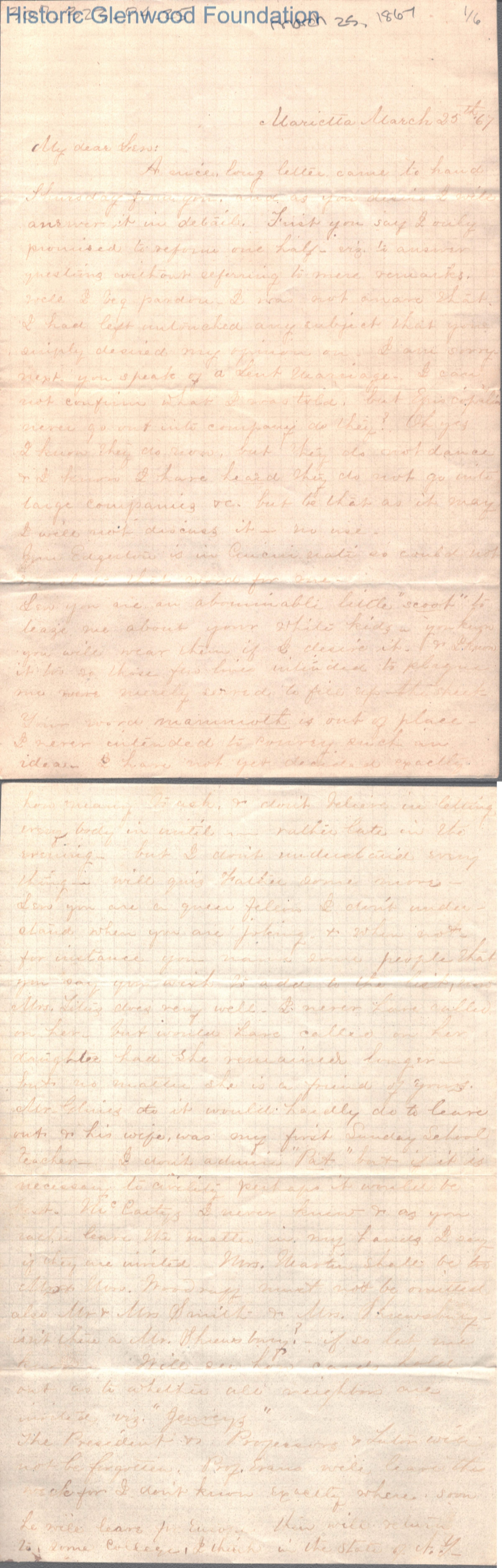 Six-page letter to Lewis Summers from Lucy W. Summers, Mar 25, 1867.