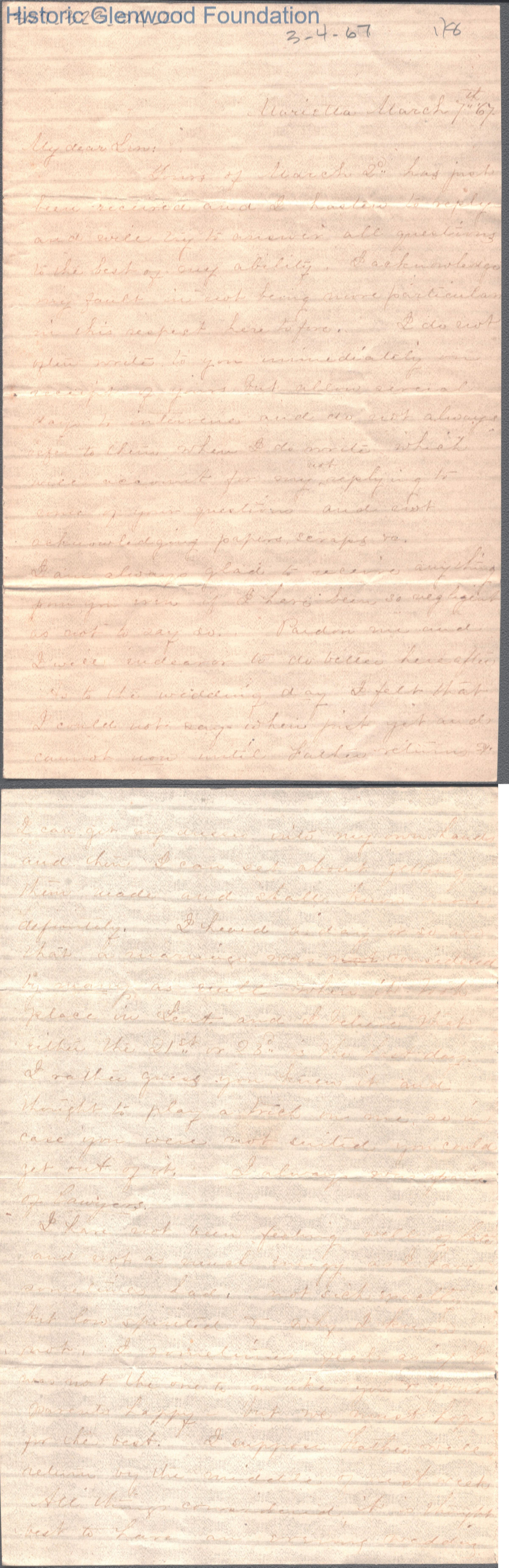 Lewis Summers from Lucy W. Summers, Mar 7, 1867