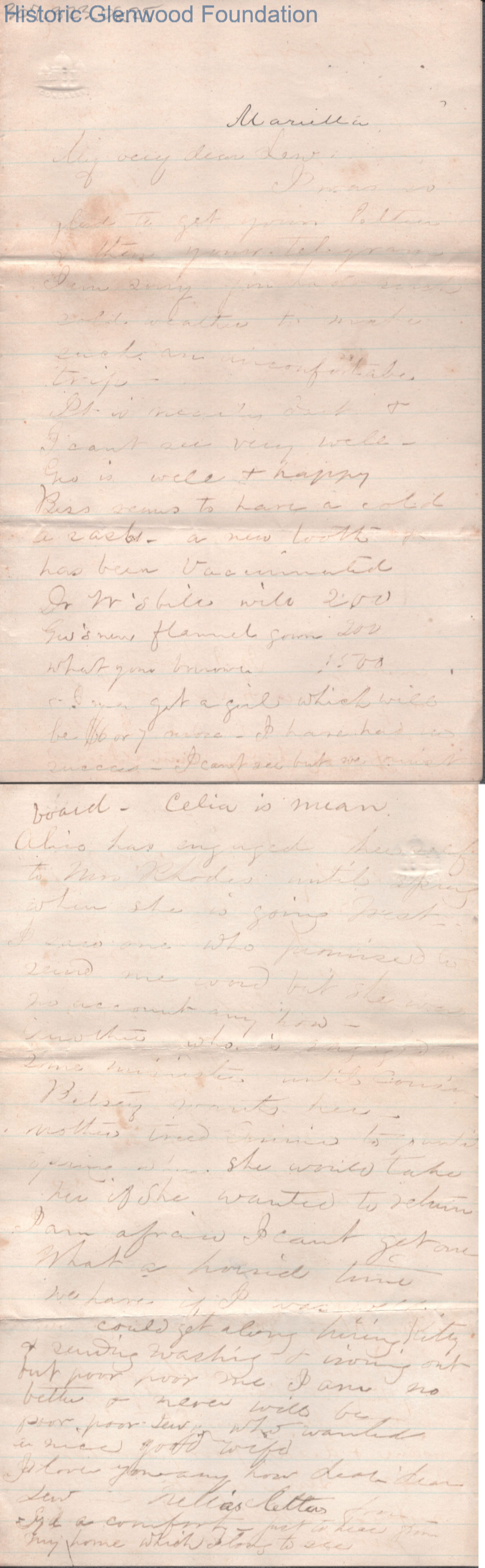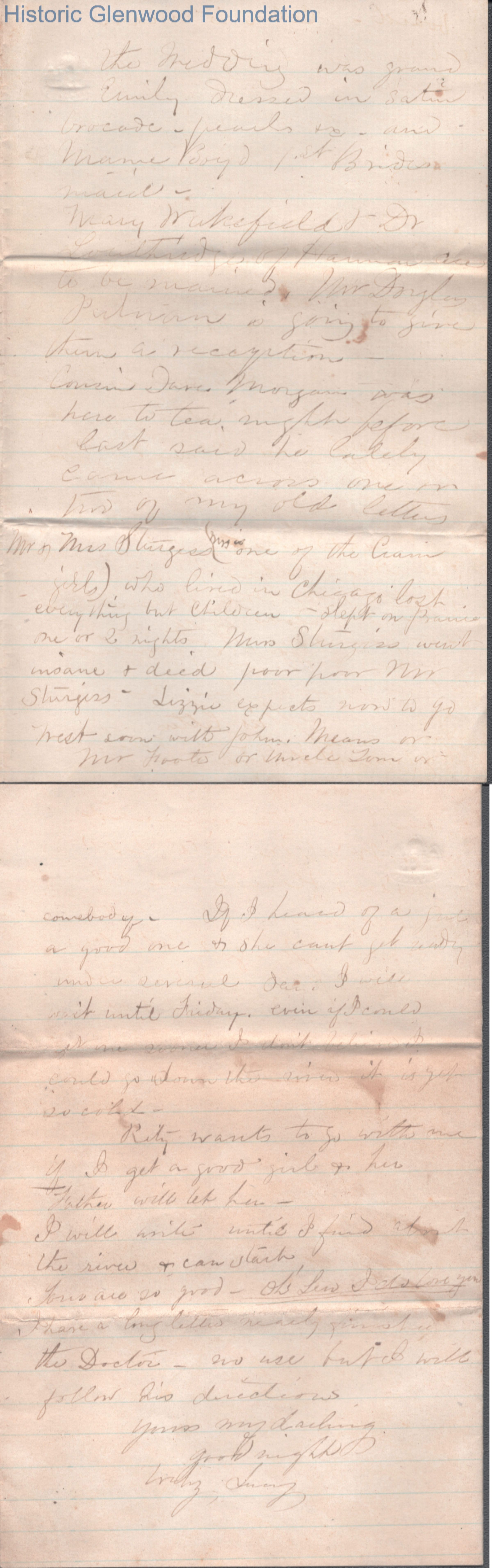 Four-page letter to Lewis Summers from Lucy W. Summers, no date.