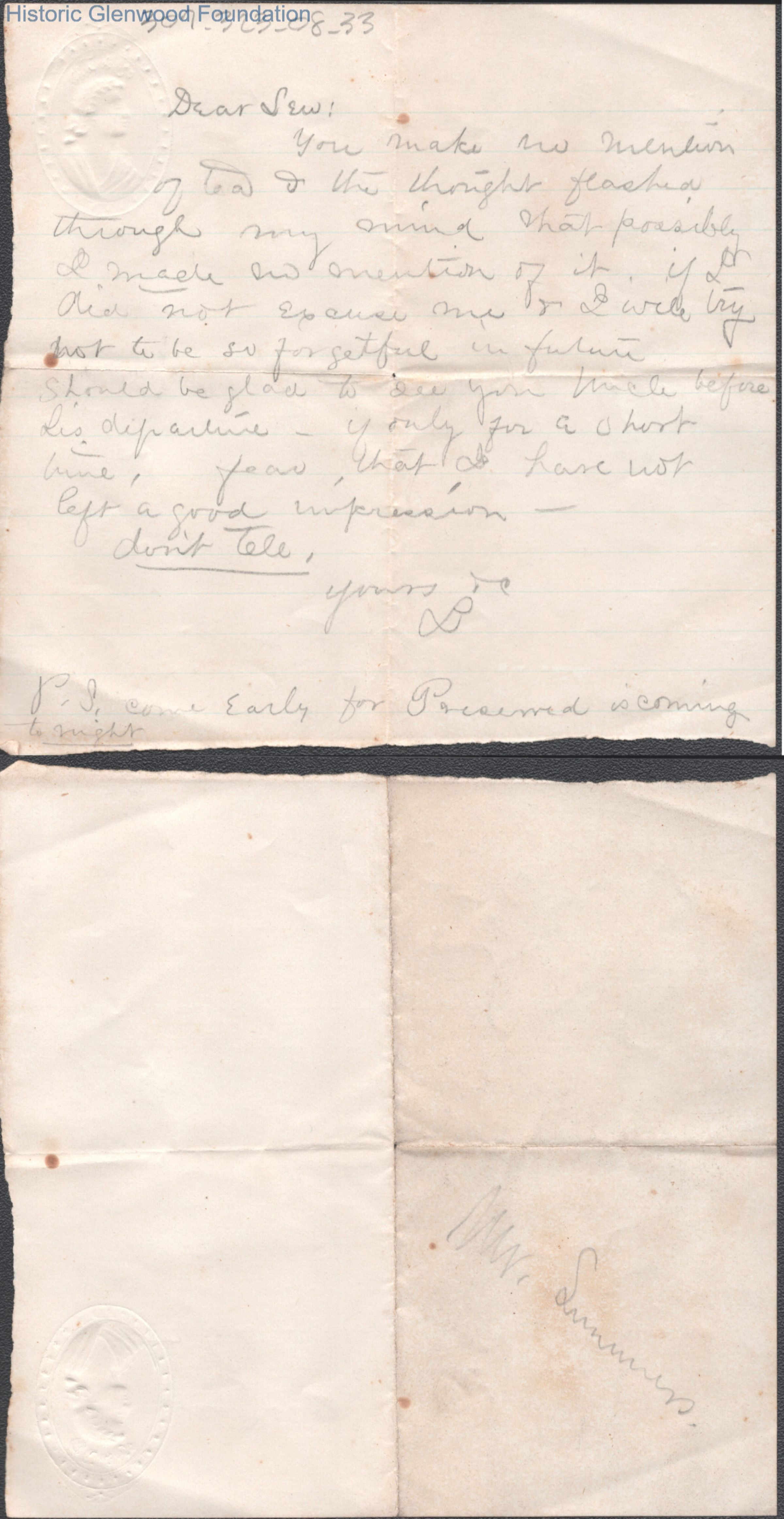 Single page letter to Lewis Summers from Lucy W. Summers, no date.