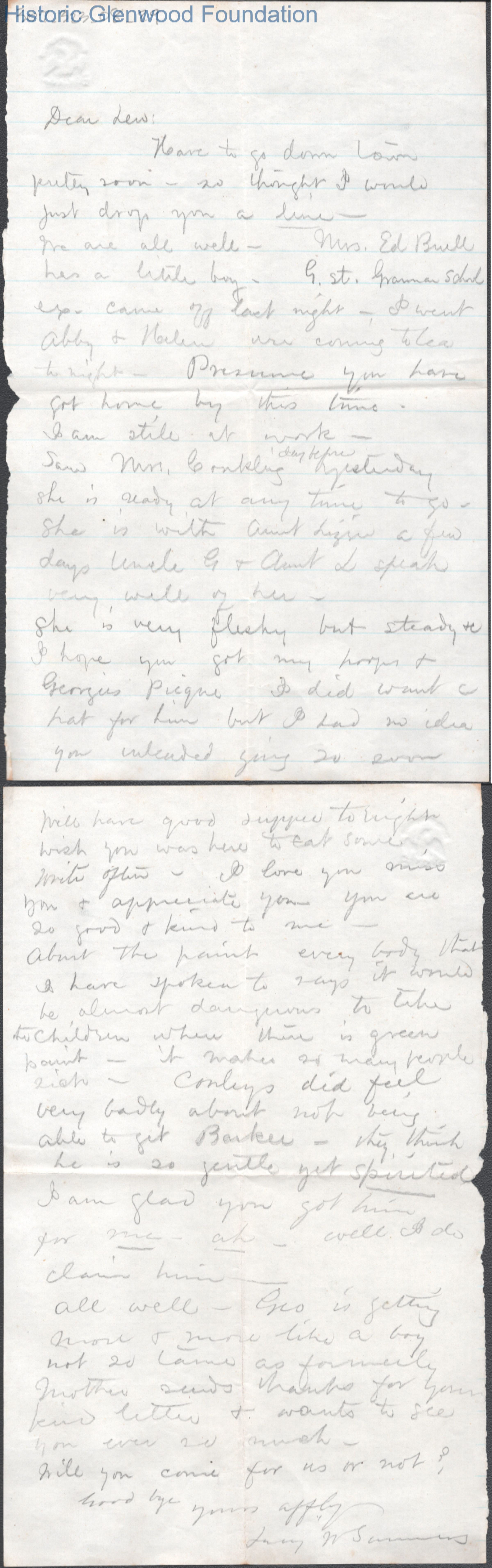 Two-page letter to Lewis Summers from Lucy W. Summers, no date.