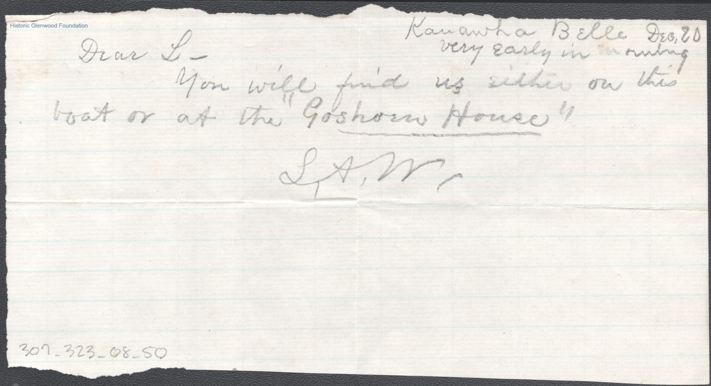 Single page note to Lewis Summers from Lucy W. Summers, unknown year ("Dec. 20" is noted).