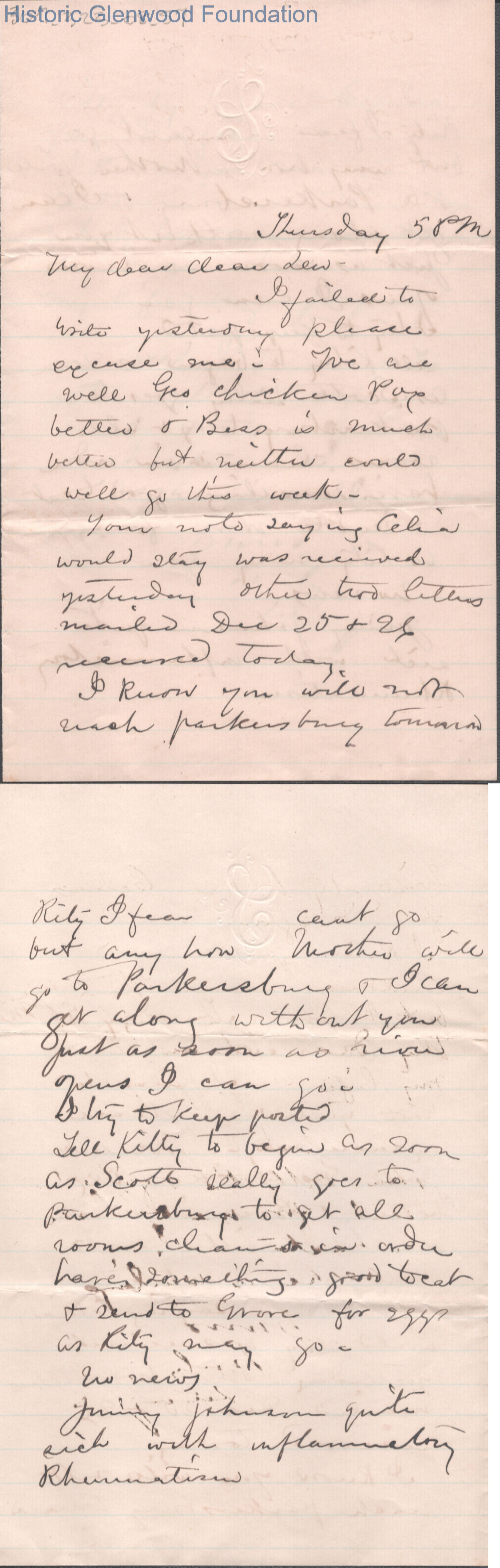 Three-page letter to Lewis Summers from Lucy W. Summers, unknown date ("Thursday 5PM" noted).