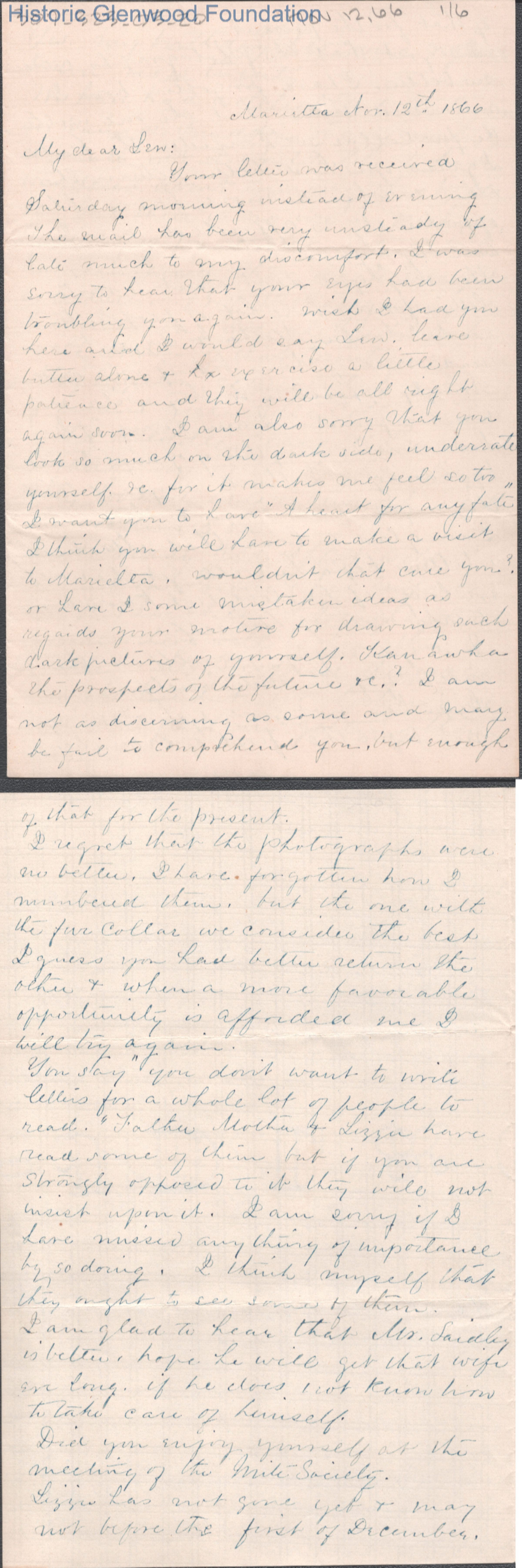 Lewis Summers from Lucy W. Summers, Nov 12, 1866