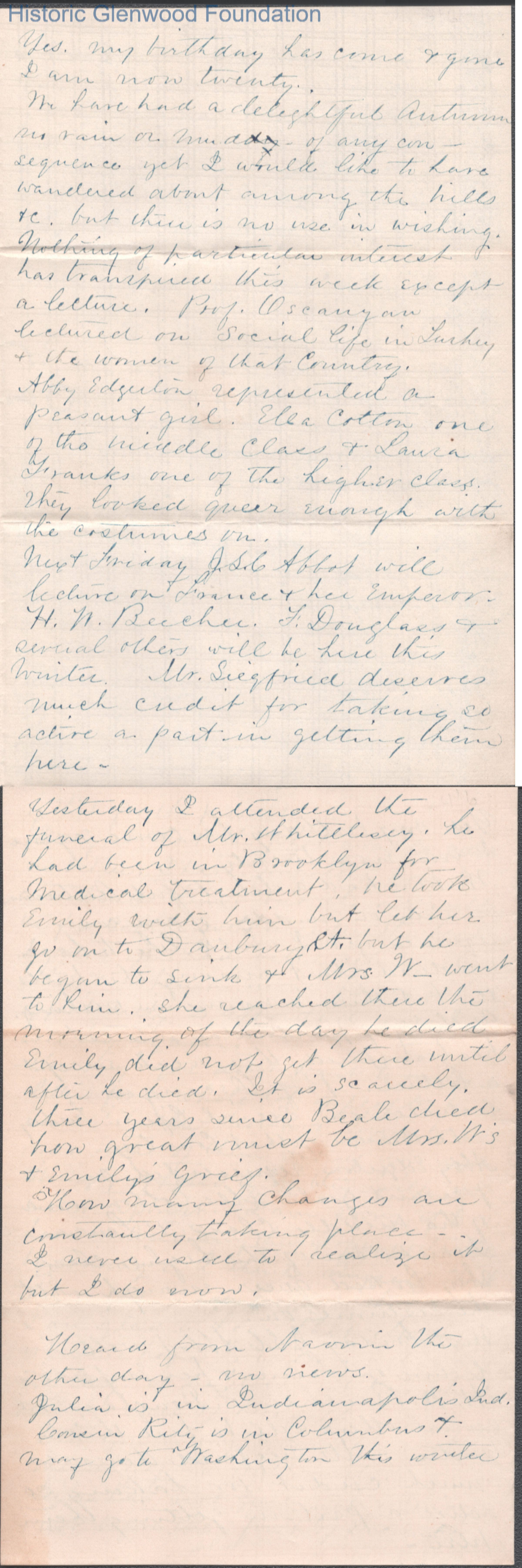 Six-page letter to Lewis Summers from Lucy W. Summers, Nov 12, 1866.