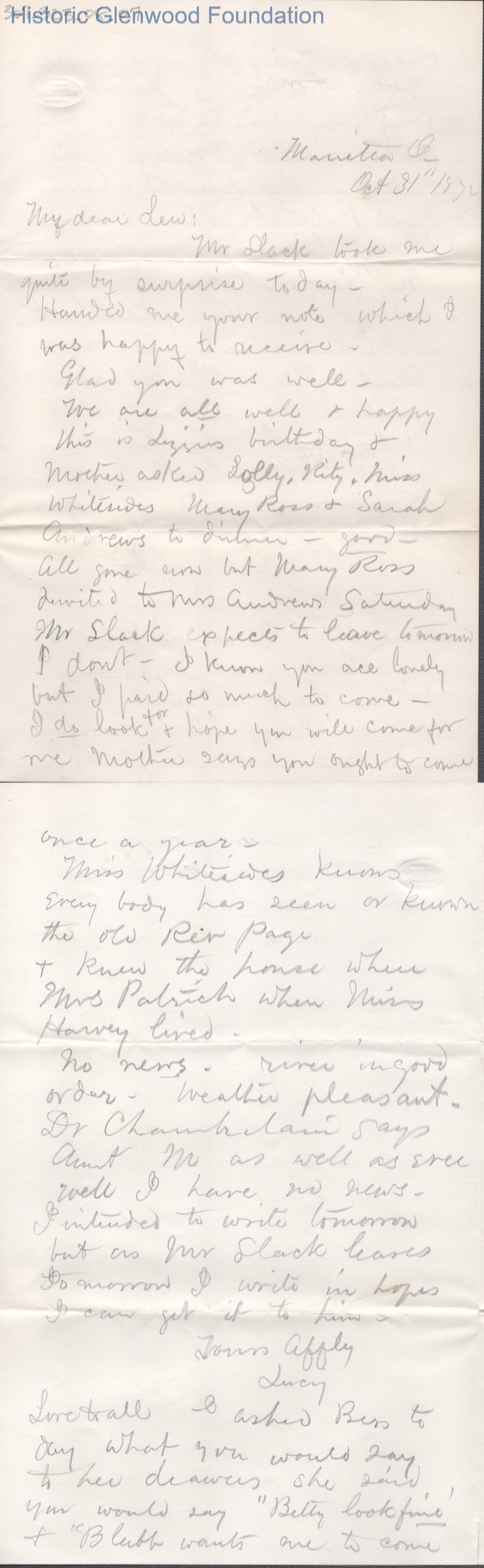 Lewis Summers from Lucy W. Summers, Oct 31, 1872