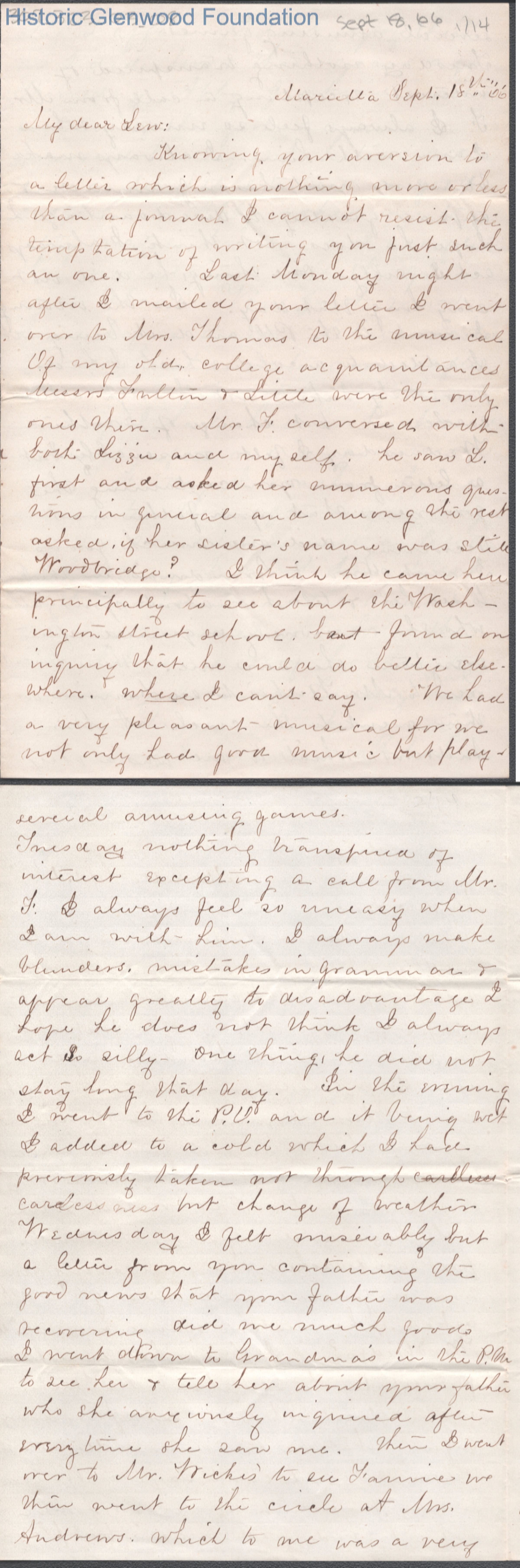 Lewis Summers from Lucy W. Summers, Sep 18, 1866