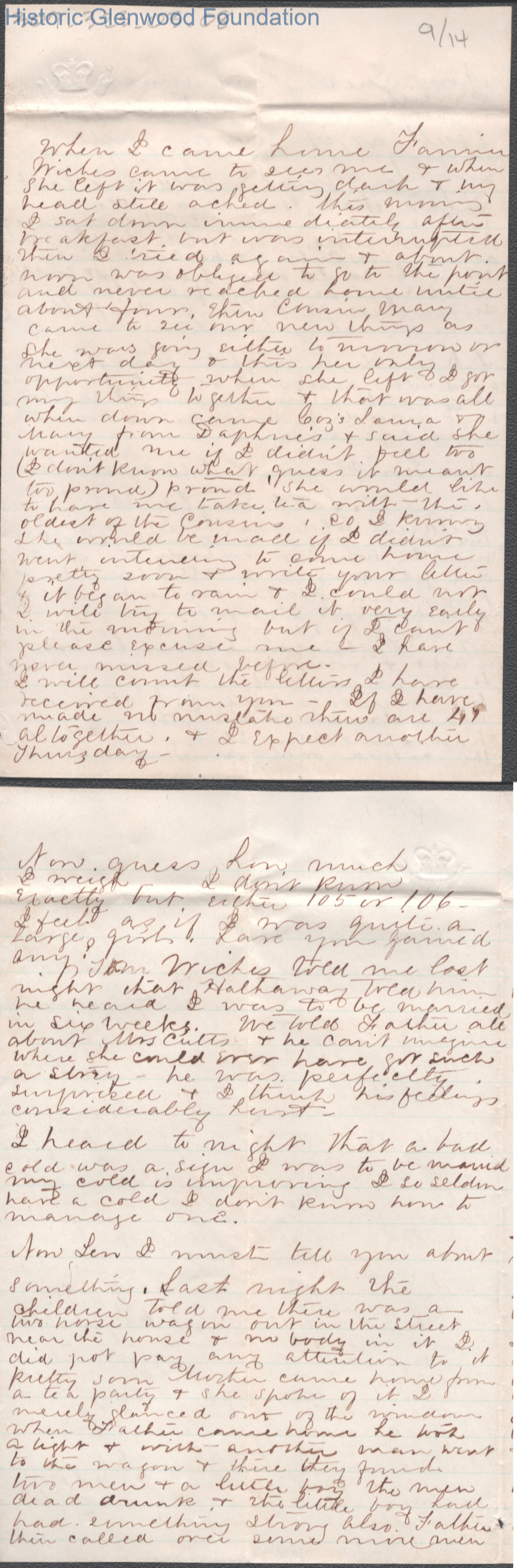 Fourteen-page letter to Lewis Summers from Lucy W. Summers, Sep 18, 1866.