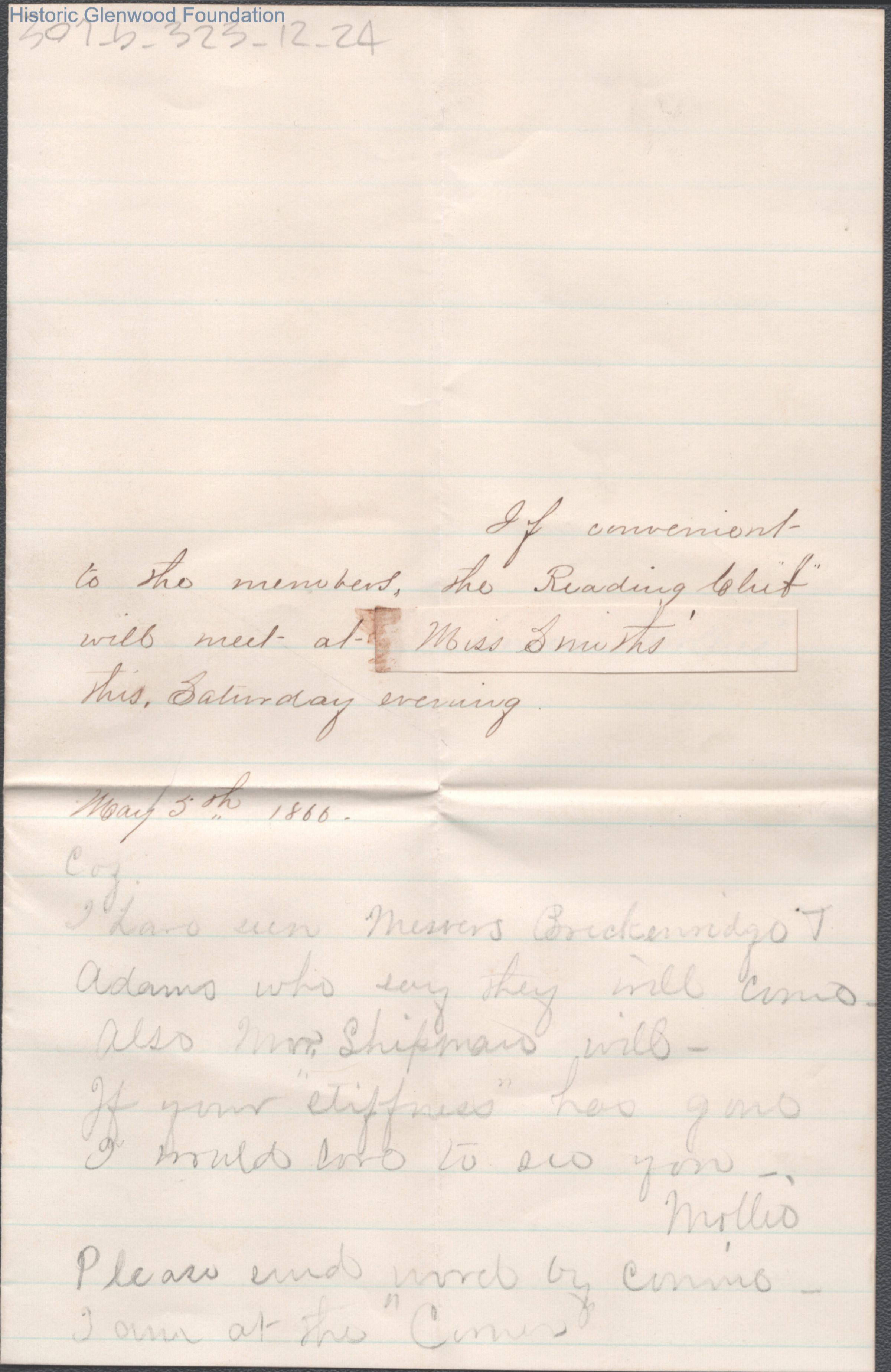Lewis Summers from Mollie, May 5, 1866.