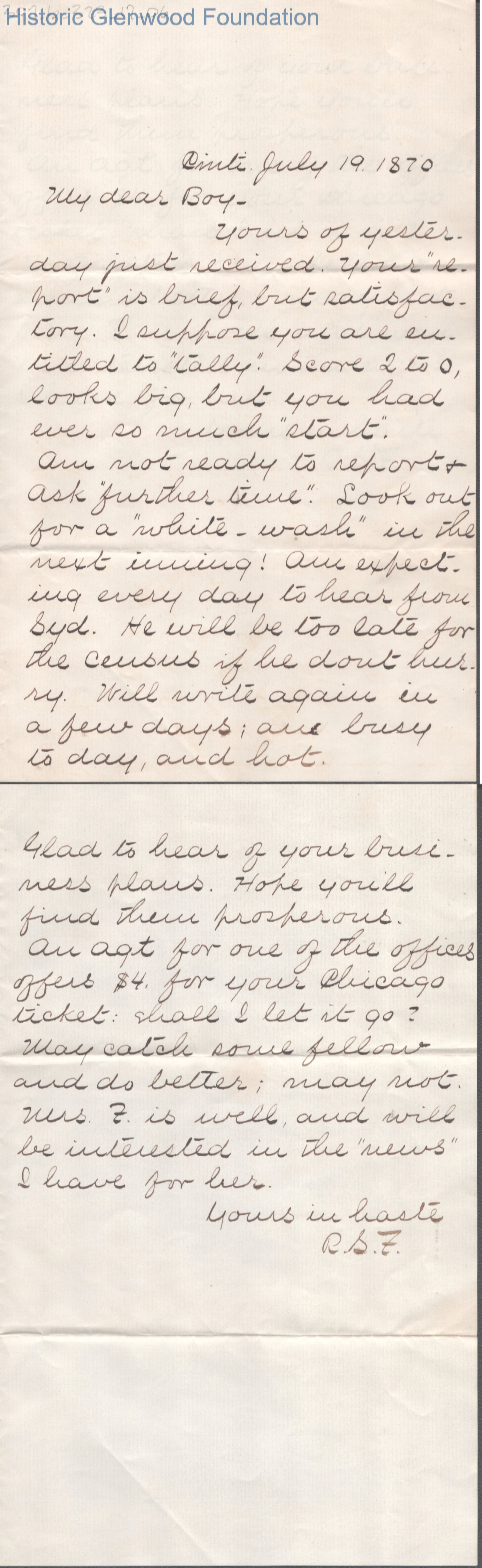 Lewis Summers from Robert S. Fulton, Jul 19, 1870