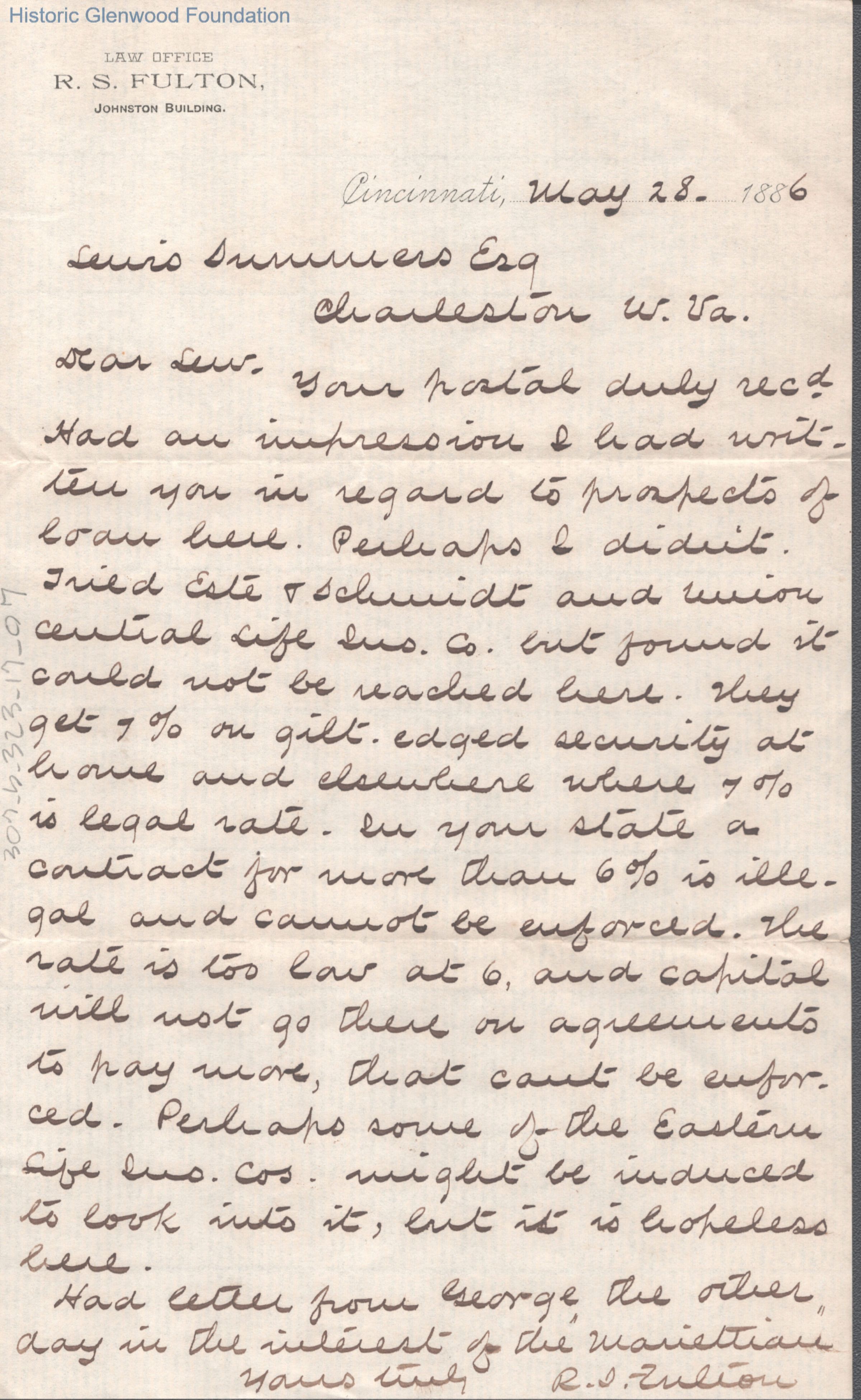 Lewis Summers from Robert S. Fulton, May 28, 1886