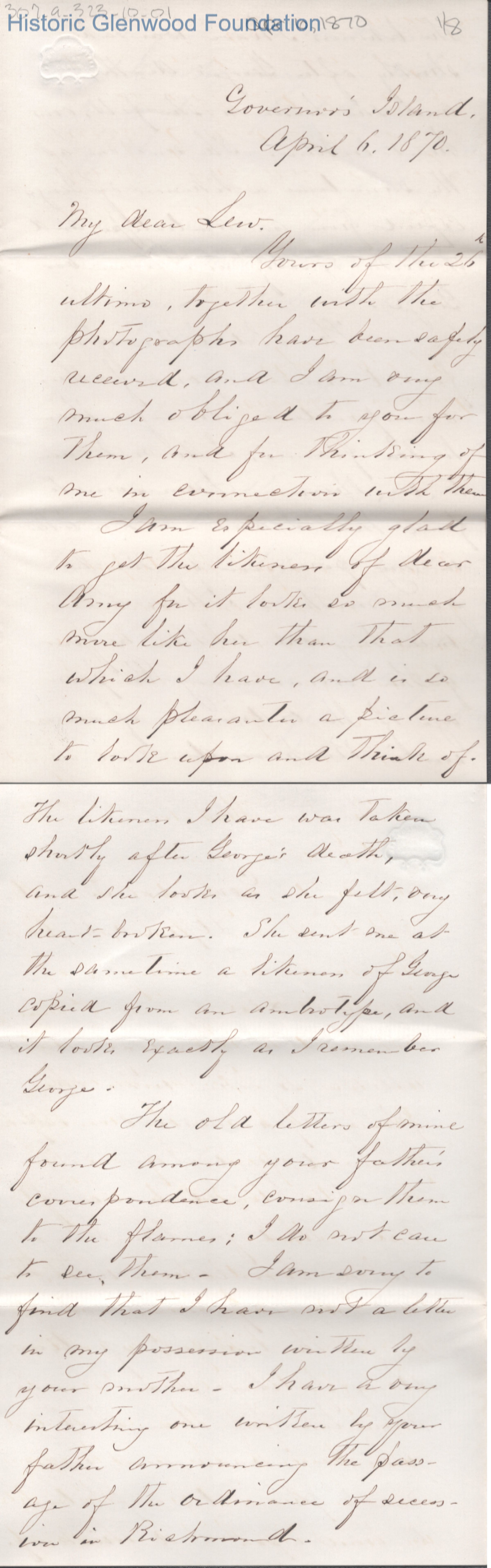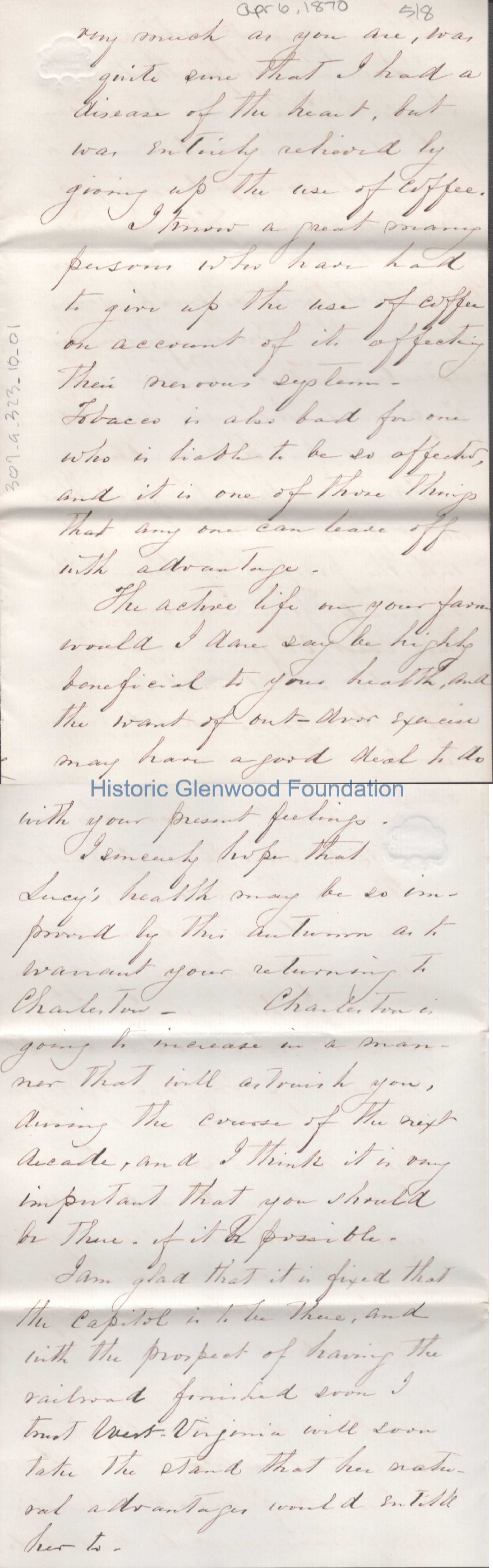 Eight-page letter to Lewis Summers from his uncle Theodore T. S. Laidley, Apr 6, 1870.