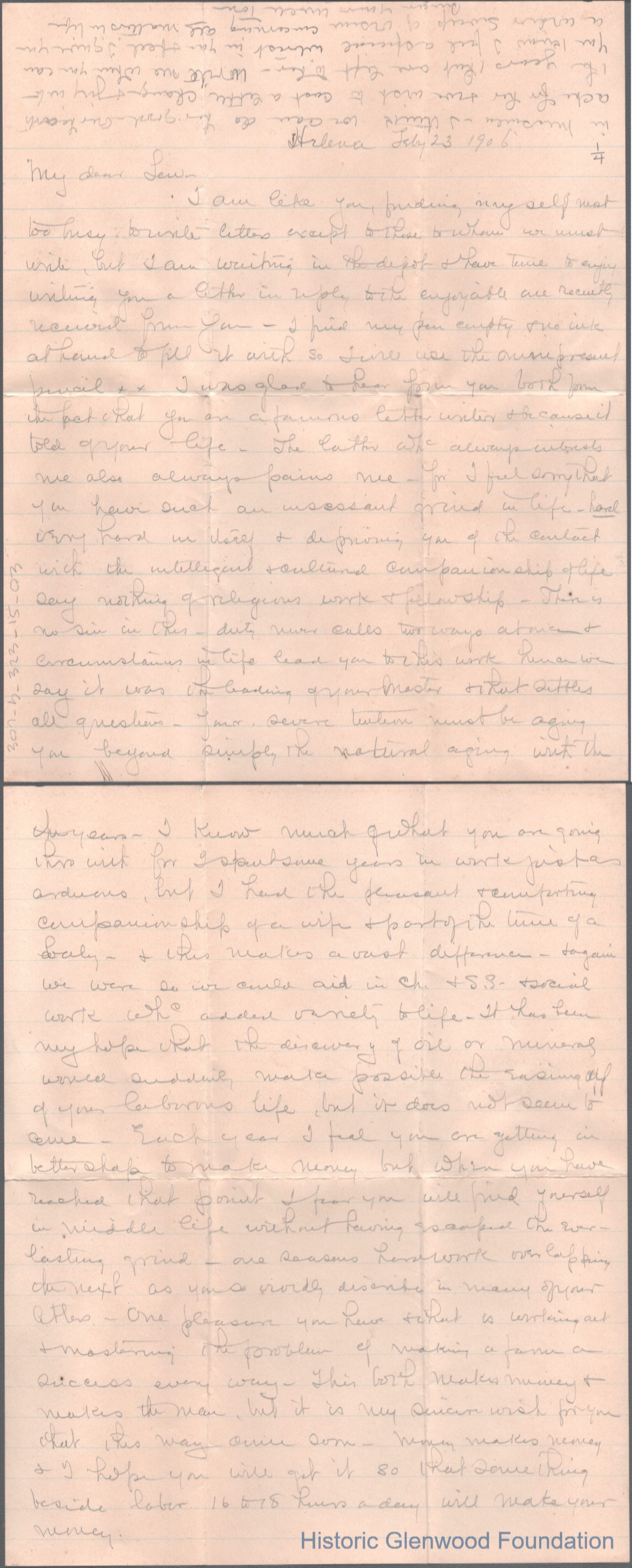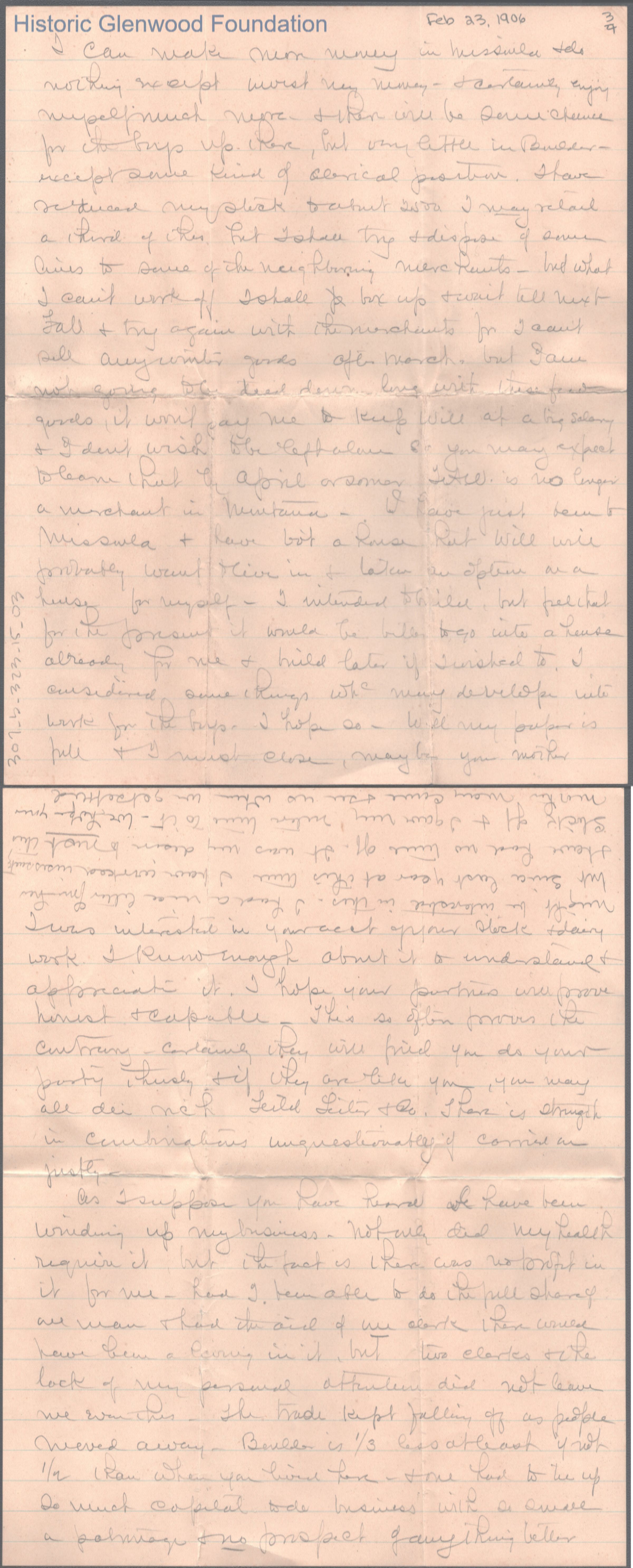 Four-page letter to Lewis Summers from Thomas A. Wickes, Feb 23, 1906.