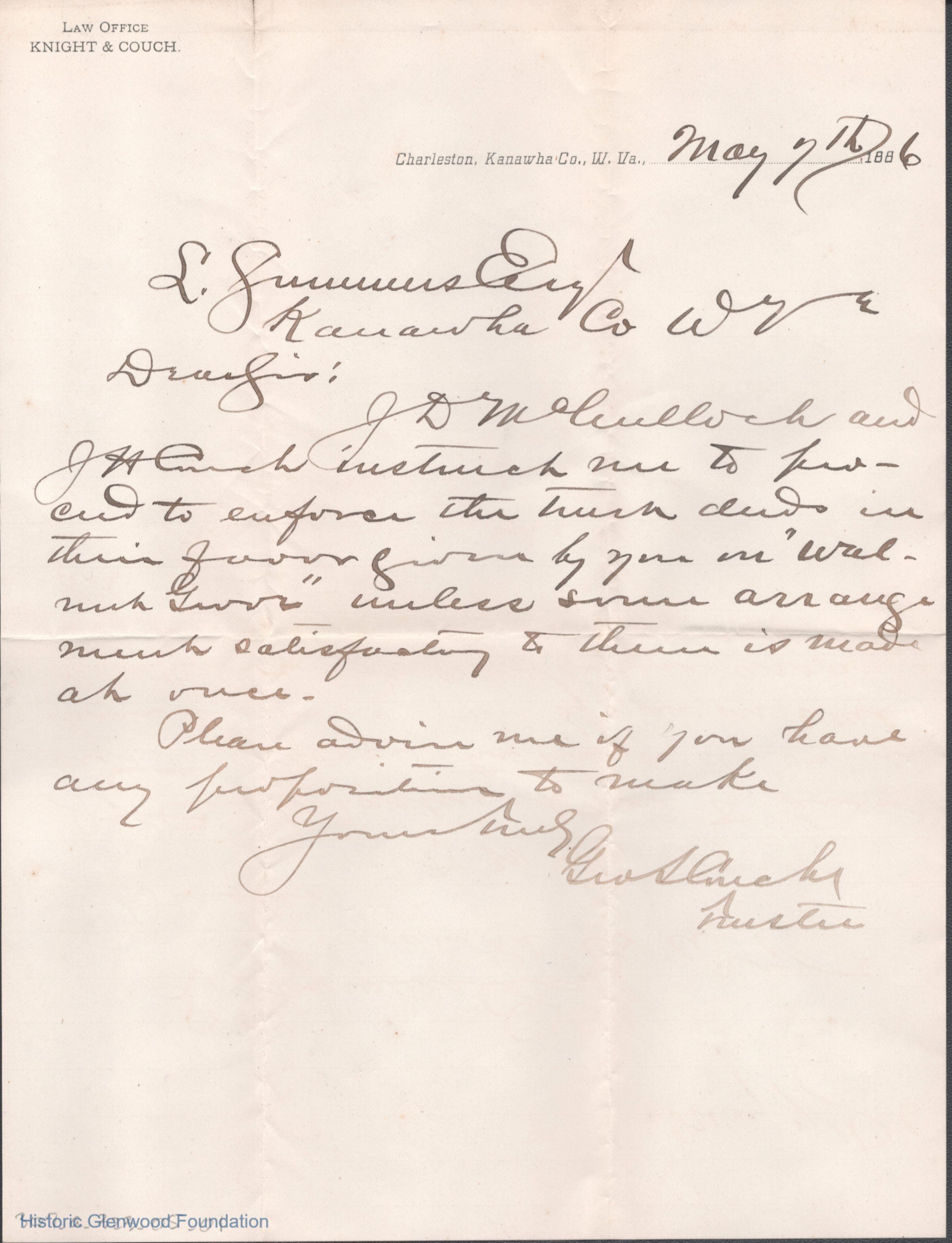 Lewis Summers from unknown sender, May 7, 1886