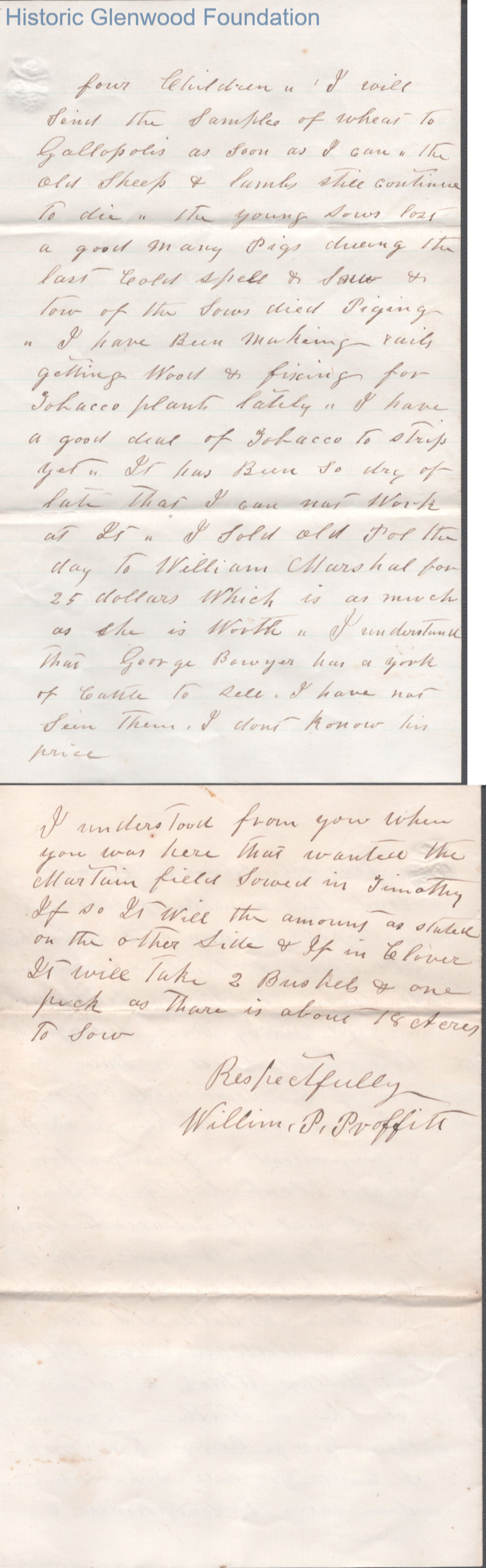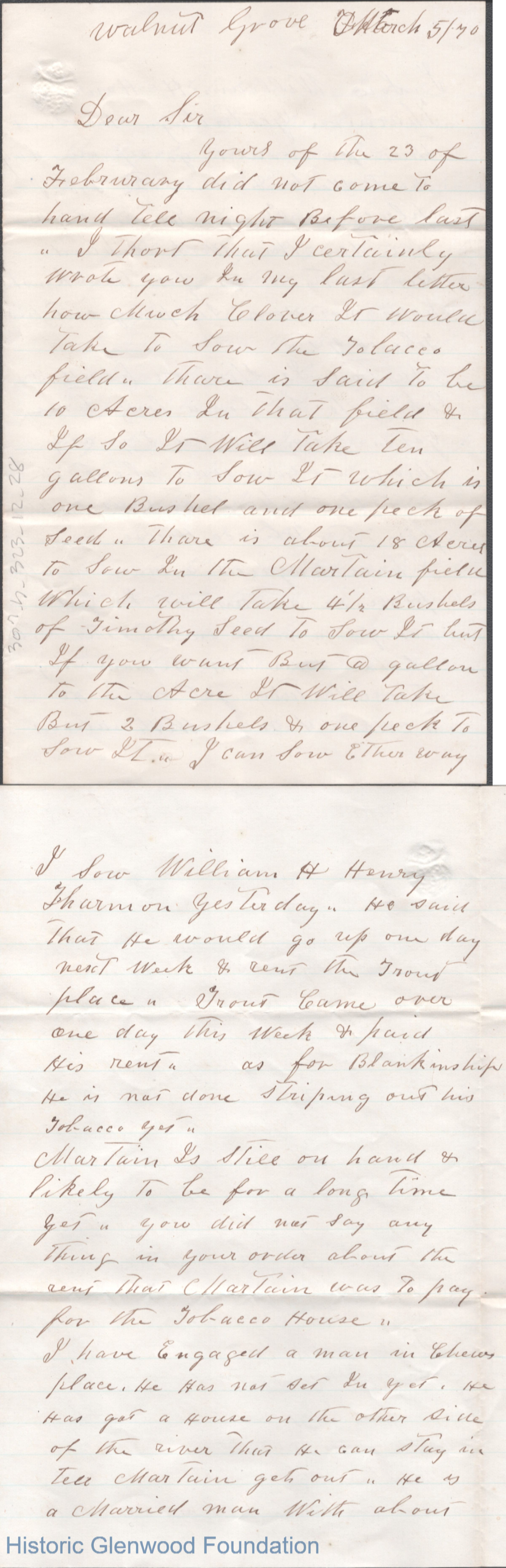 Four-page letter to Lewis Summers from William P. Proffitt, Mar 5, 1870.