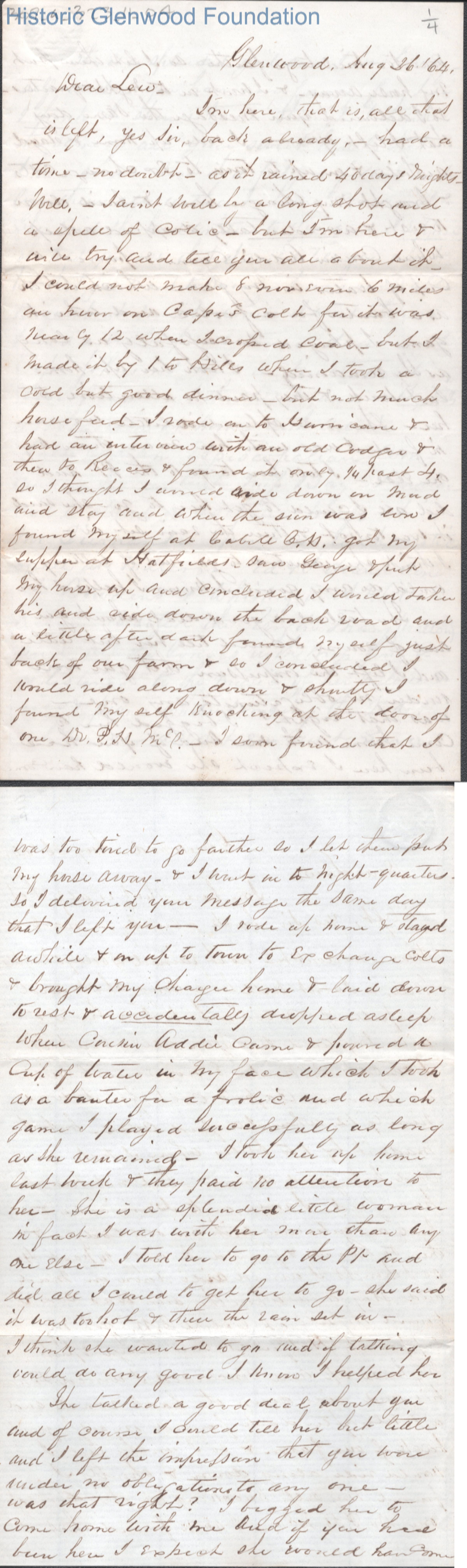 Four-page letter to Lewis Summers from his uncle William S. Laidley, Aug 26, 1864.