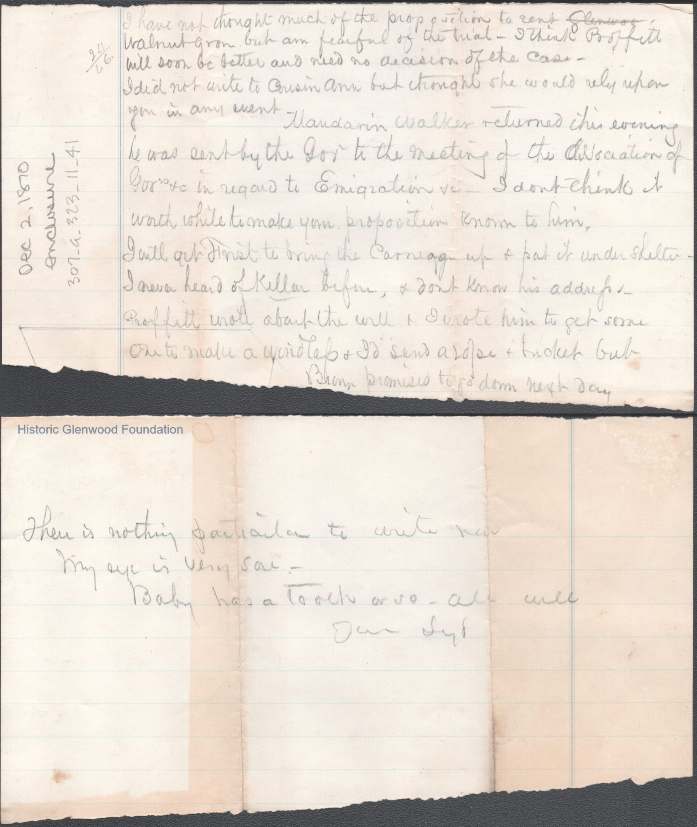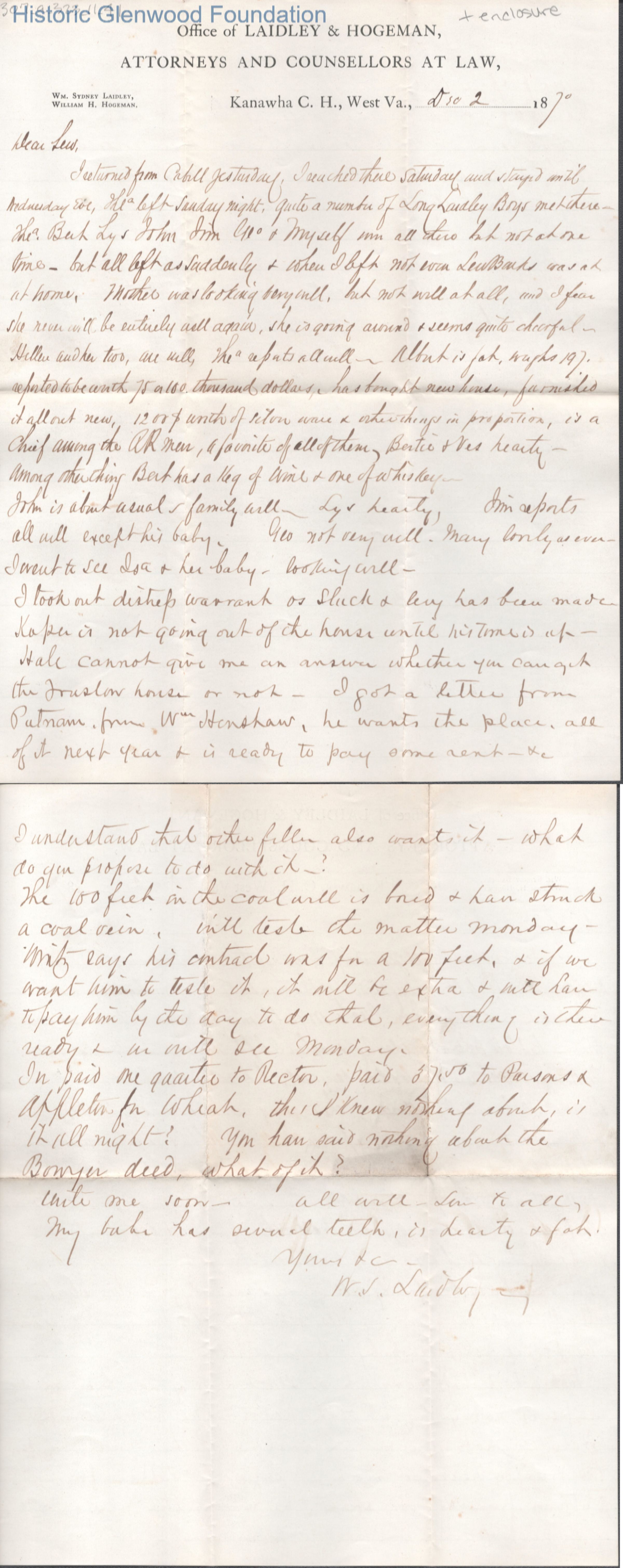 Two-page letter with enclosure to Lewis Summers from his uncle William S. Laidley, Dec 2, 1870.