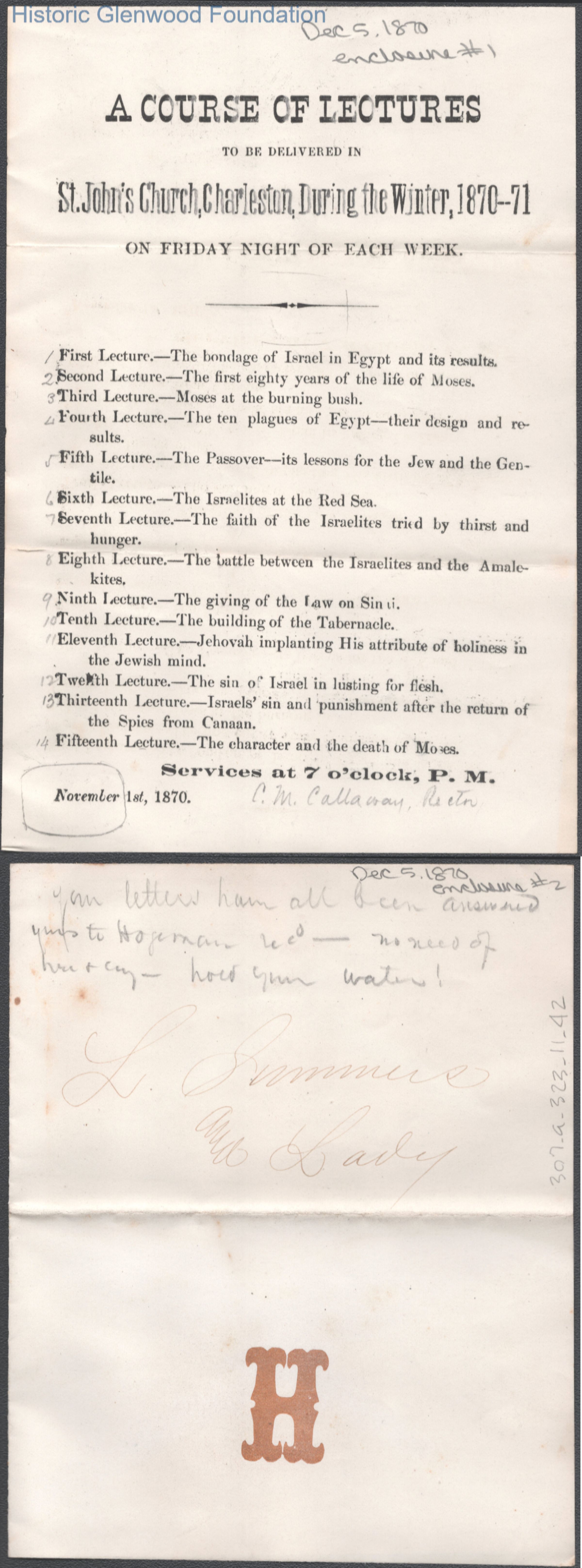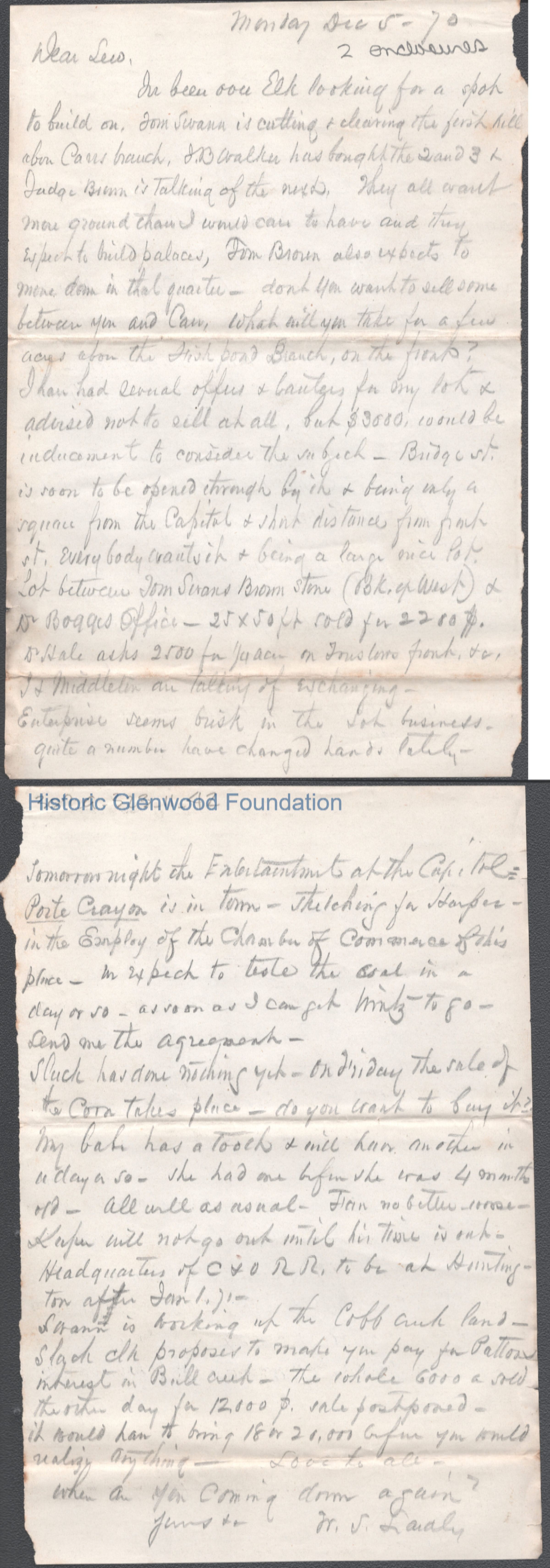 Two-page letter to Lewis Summers with two enclosures from his uncle William S. Laidley, Dec 5, 1870.