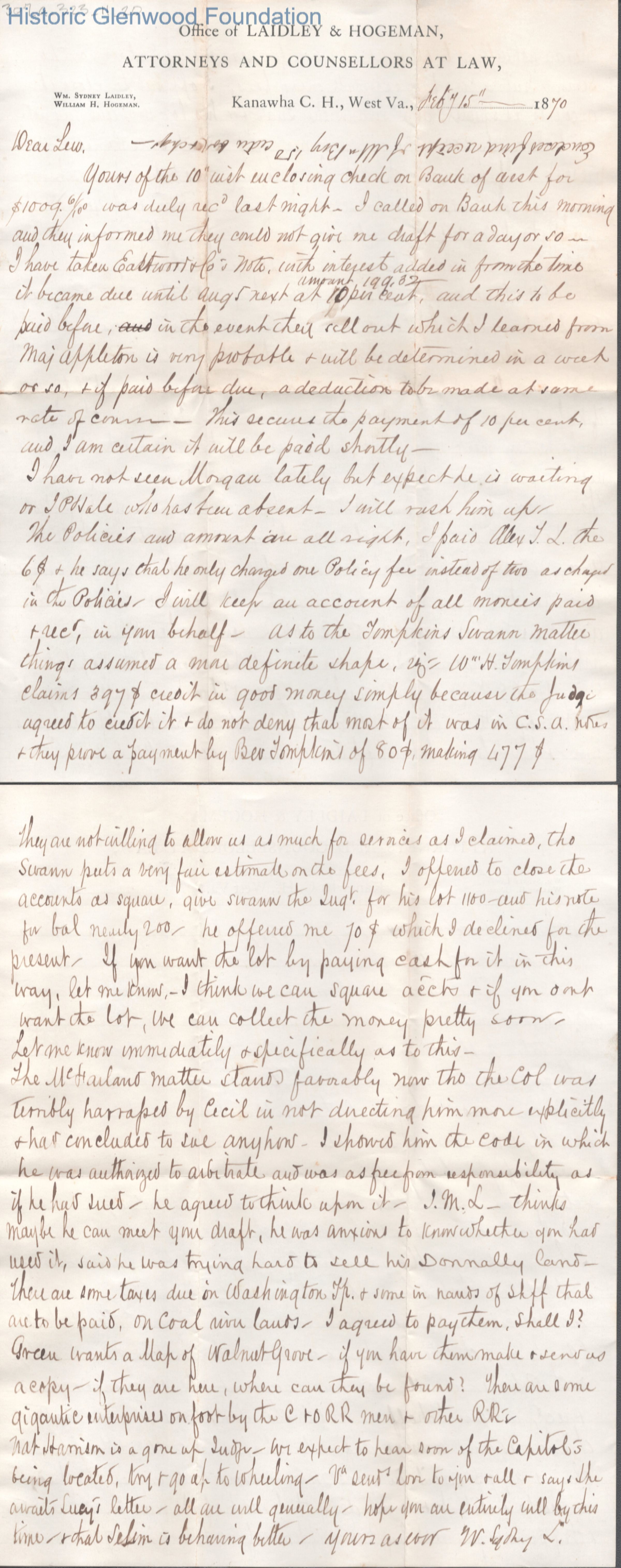 Two-page letter to Lewis Summers from his uncle William S. Laidley, Feb 15, 1870.