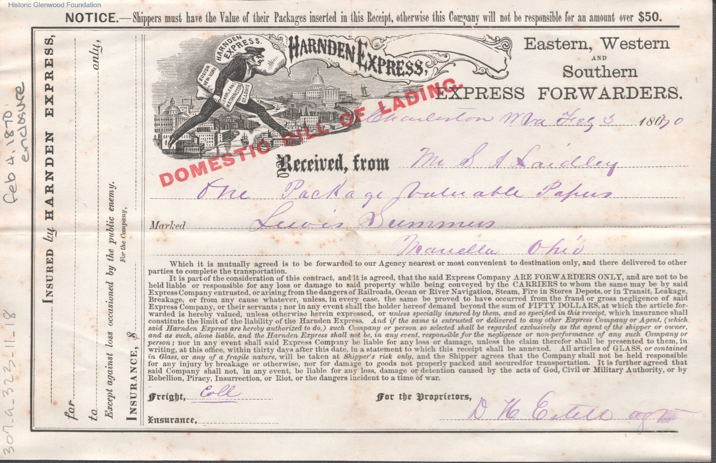 Lewis Summers from William S. Laidley, Feb 4, 1870