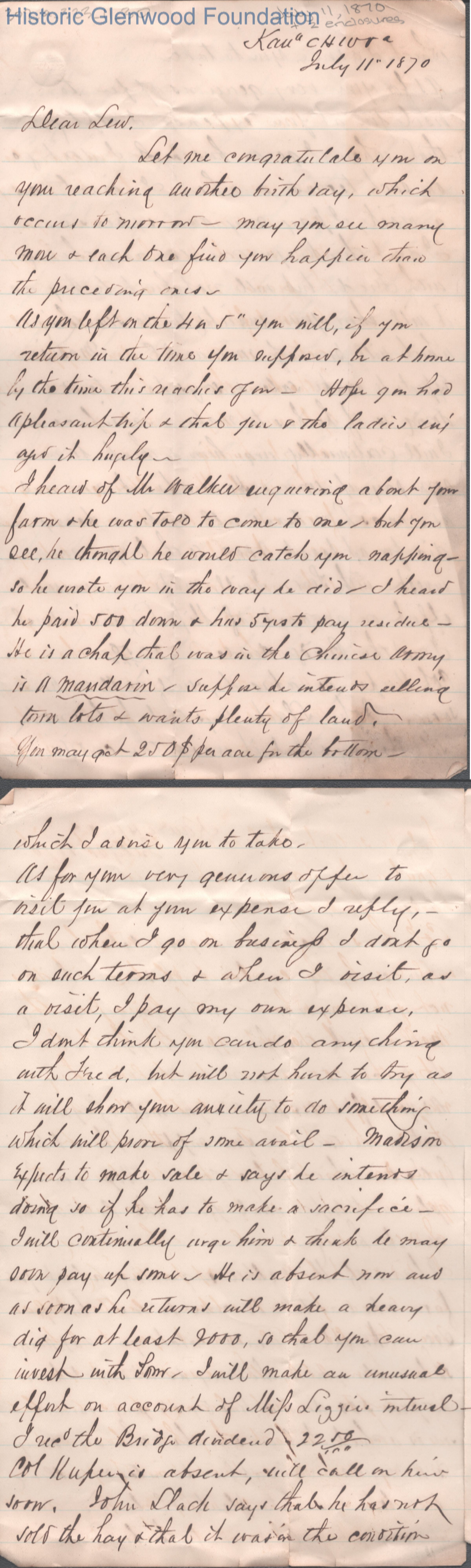 Lewis Summers from William S. Laidley, Jul 11, 1870