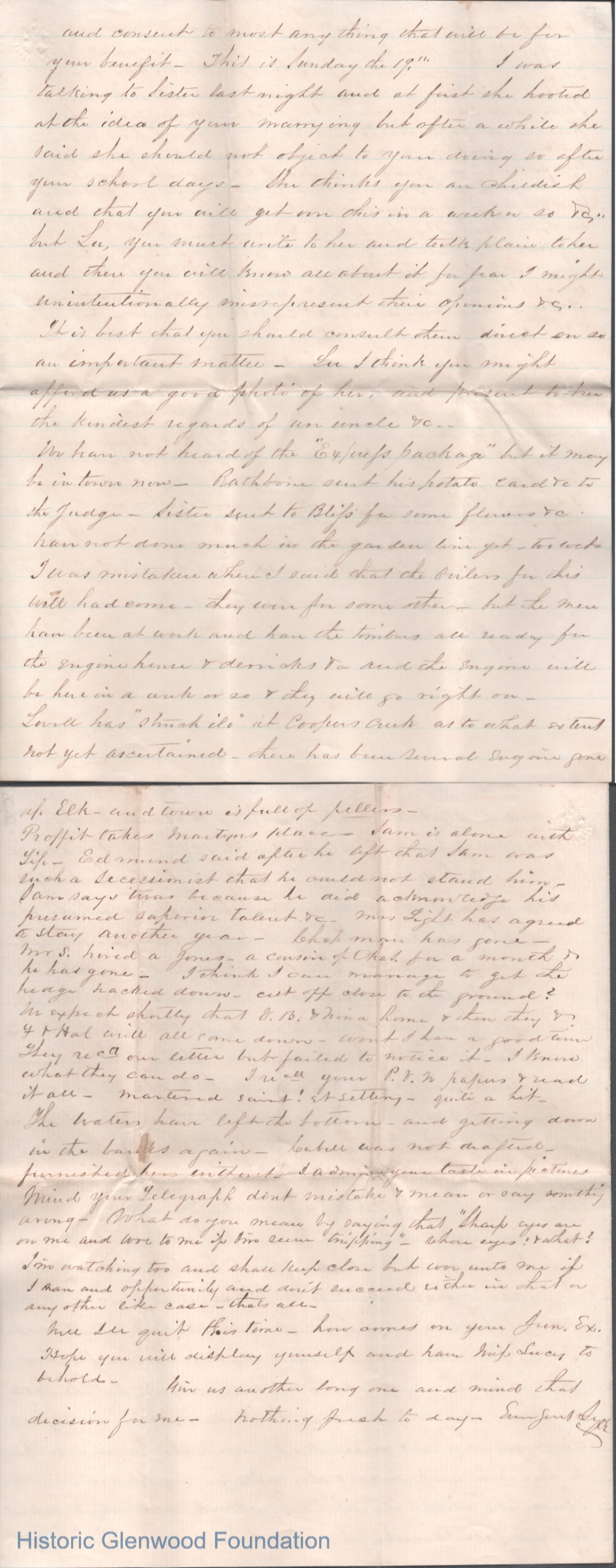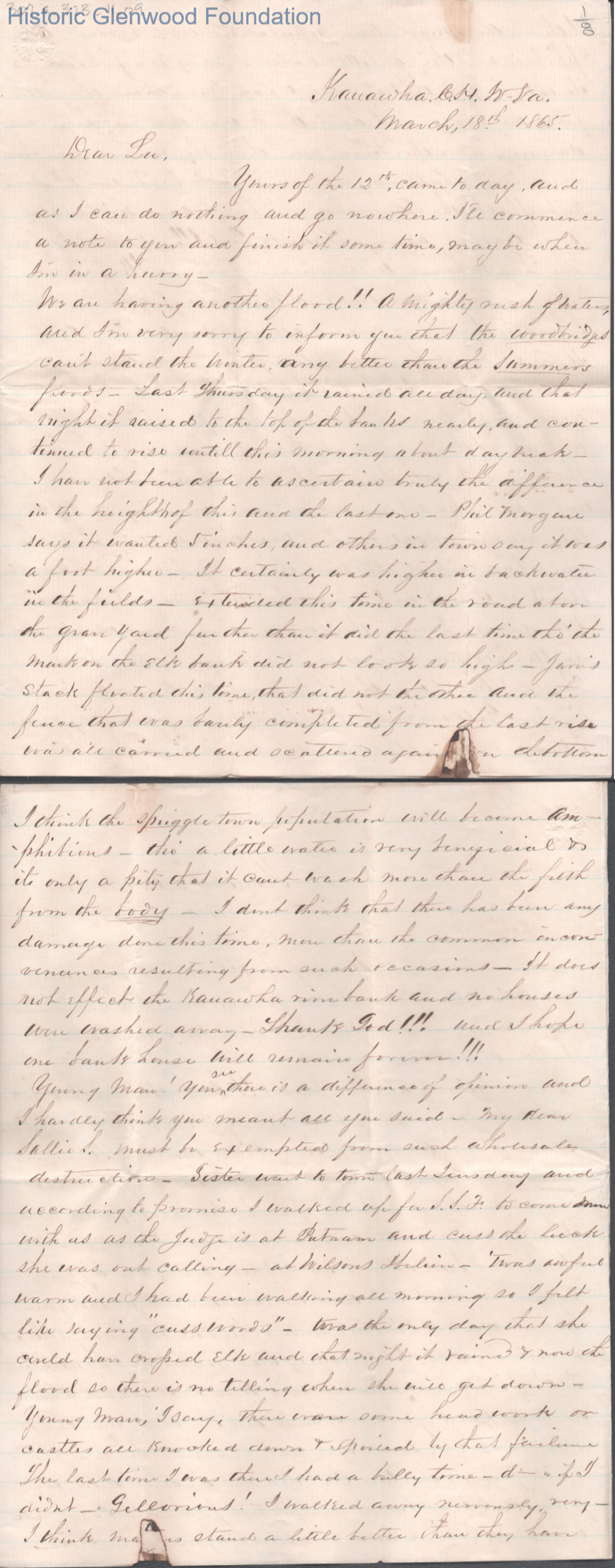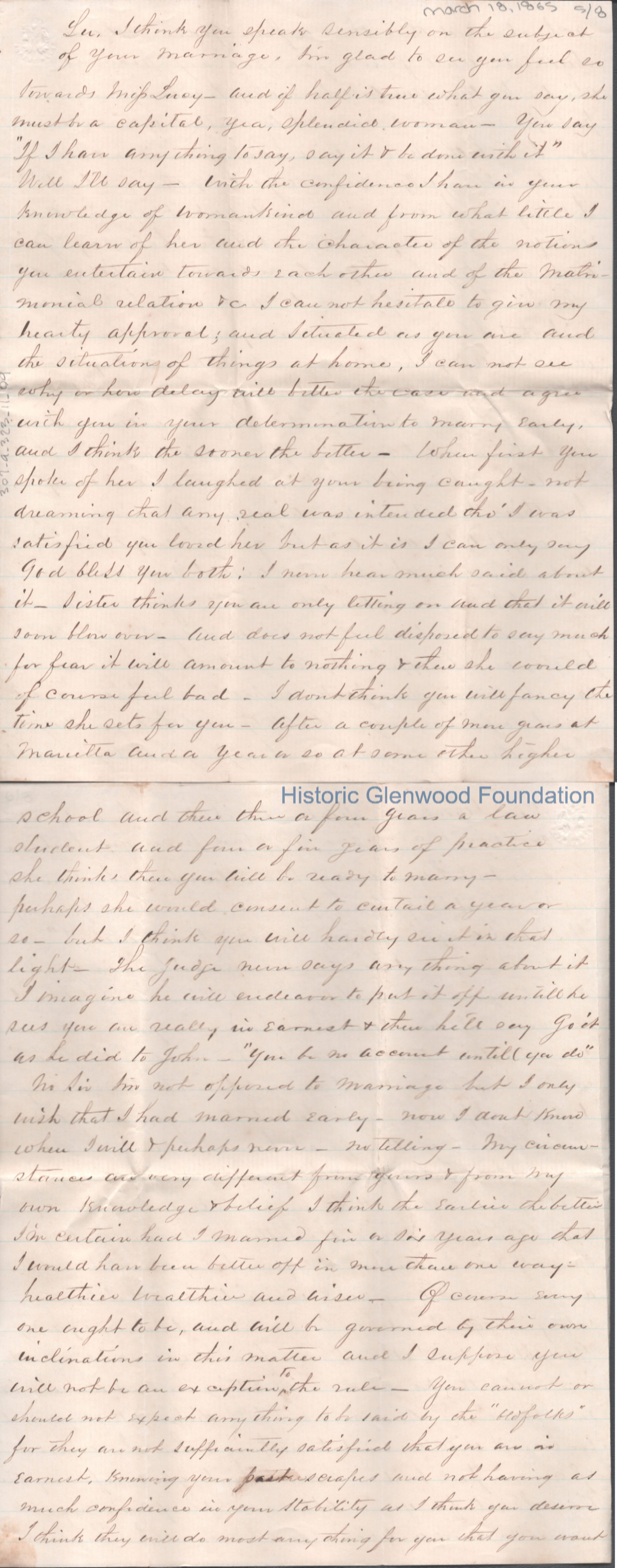 Eight-page letter to Lewis Summers from his uncle William S. Laidley, Mar 18, 1865.