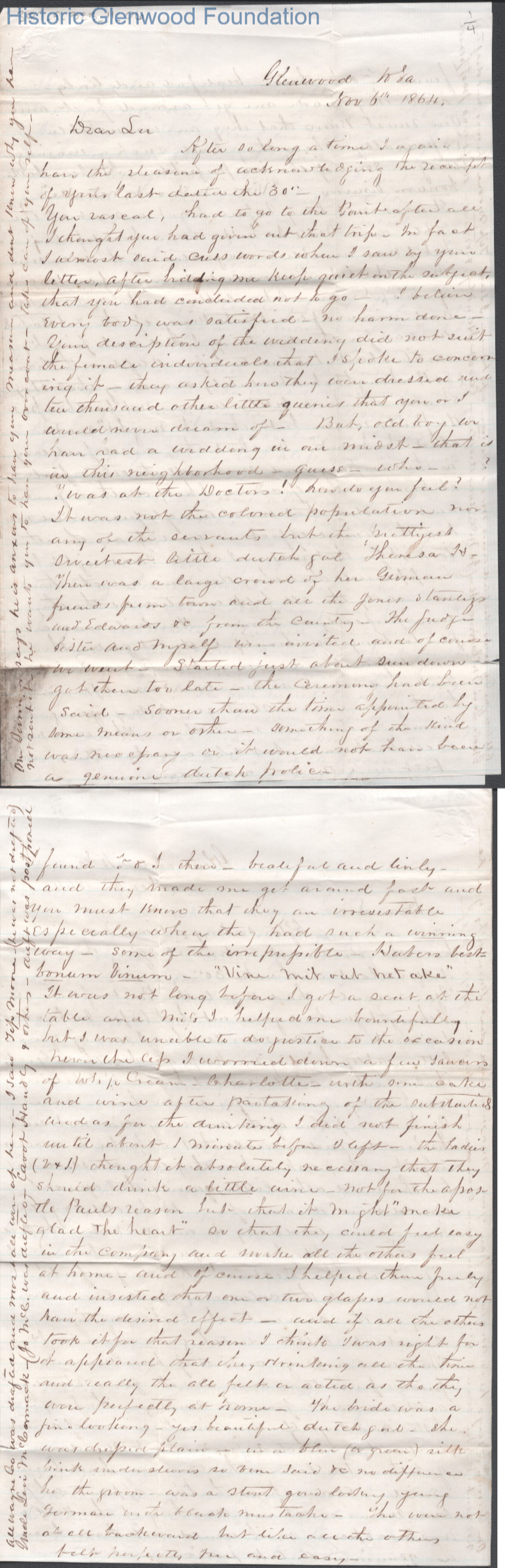 Four-page letter to Lewis Summers from his uncle William S. Laidley, Nov 6, 1864.