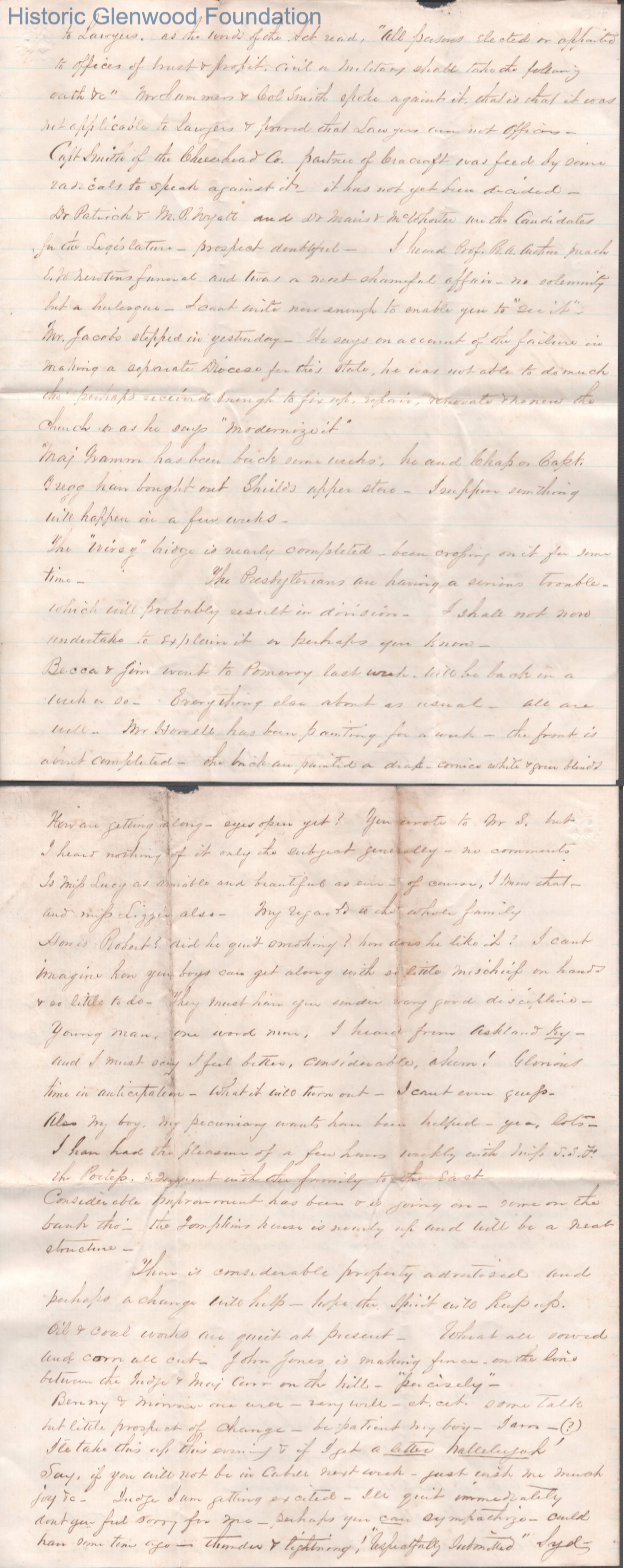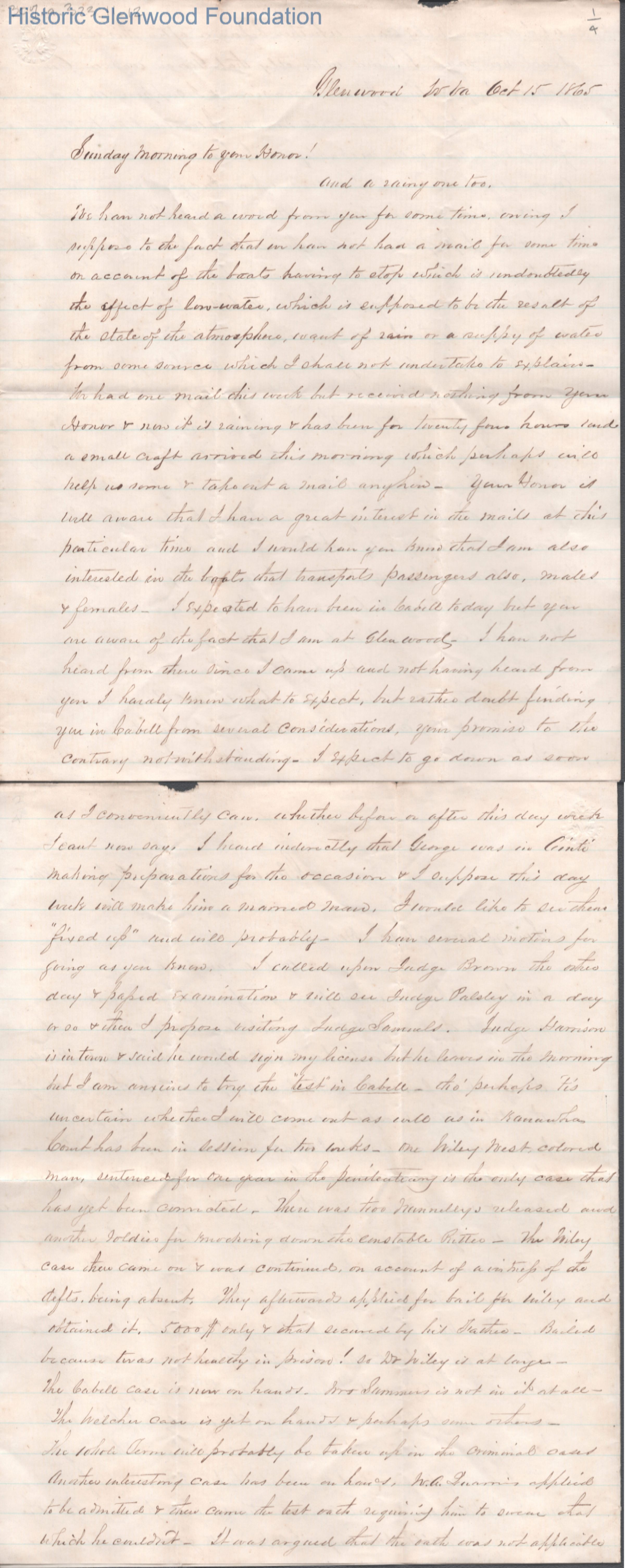 Four-page letter to Lewis Summers from William S. Laidley, Oct 15, 1865.